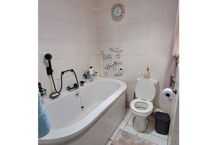 River-view townhouse in desirable Parys — one of only two units, with balcony, private garden and storeroom, water tank, prepaid electricity, pet-friendly; two bedrooms with en-suites, three covered parking.