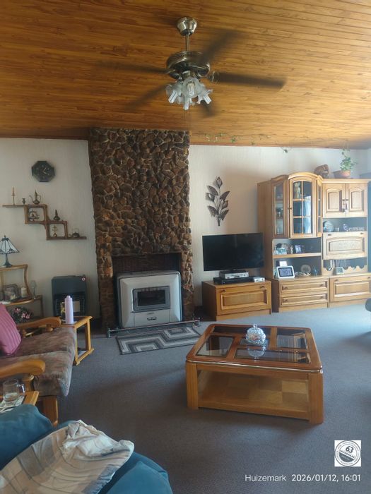 Family living in a peaceful neighbourhood with a big yard and built-in braai, cosy lounge with fireplace and separate dining — three bedrooms, one bathroom, garage and double carports.