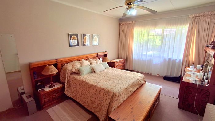 Relax and entertain year-round on a private, leafy 1,813 m² garden estate with a patio and built-in braai overlooking the pool; four bedrooms, two bathrooms, single garage and double carports.