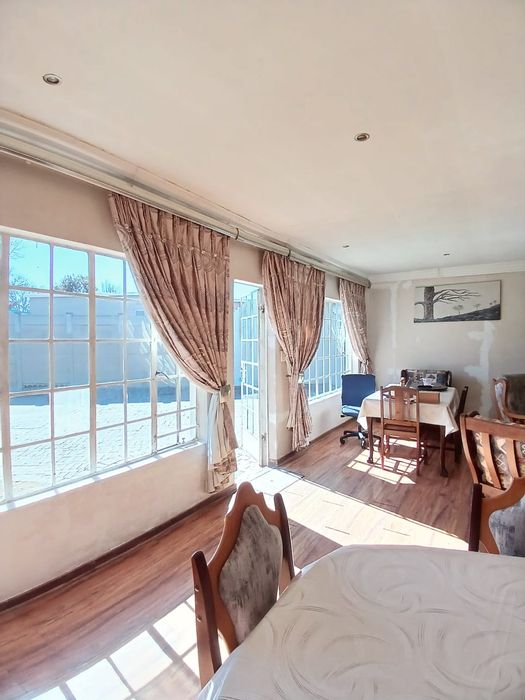 Relaxed family living in Sasolburg Ext 23 with secure, pet-friendly outdoor entertaining — sparkling pool and lapa on a mature garden. Four bedrooms, three bathrooms, double garage.