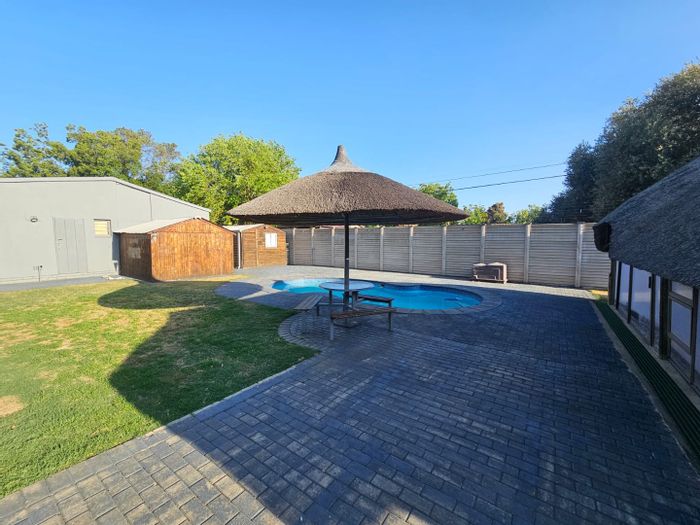 Entertainer's family haven in sought-after Sasolburg, relaxed indoor-outdoor living around a heated pool and built-in braai, five bedrooms, three bathrooms, multiple garages and carports.