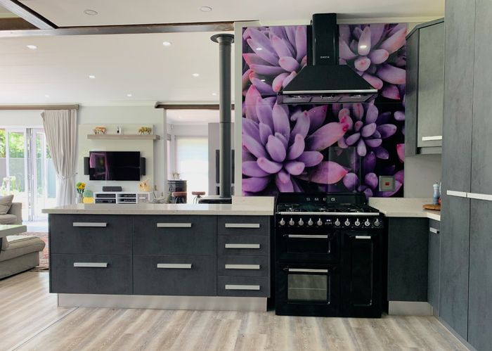 Resort-style living in a peaceful suburban enclave with manicured garden and pool, gourmet granite kitchen with SMEG stove, bespoke entertainment bar, five bedrooms, four bathrooms.