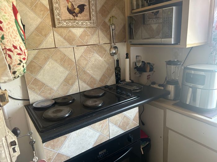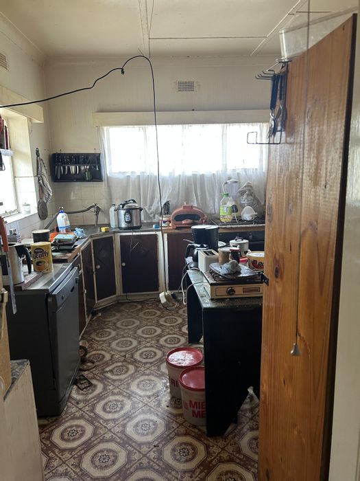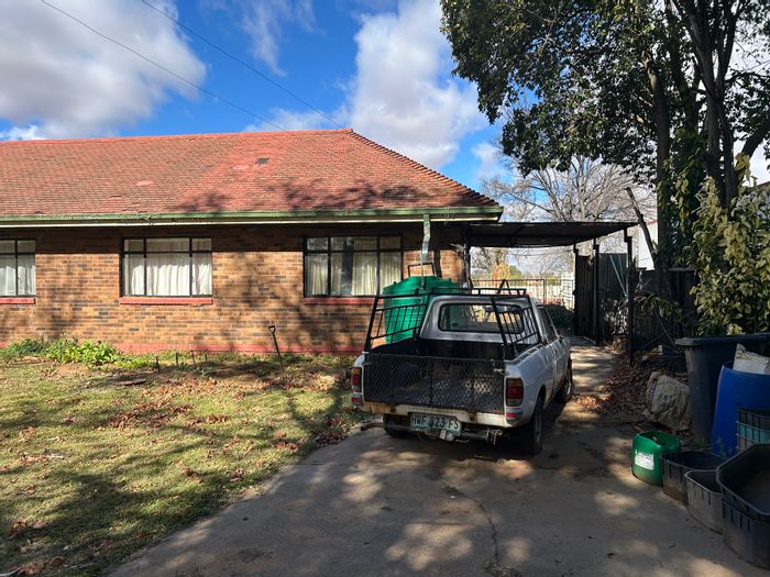 Three bedrooms, one bathroom, and a single garage in Vierfontein. Extra outside rooms and covered parking for two vehicles.