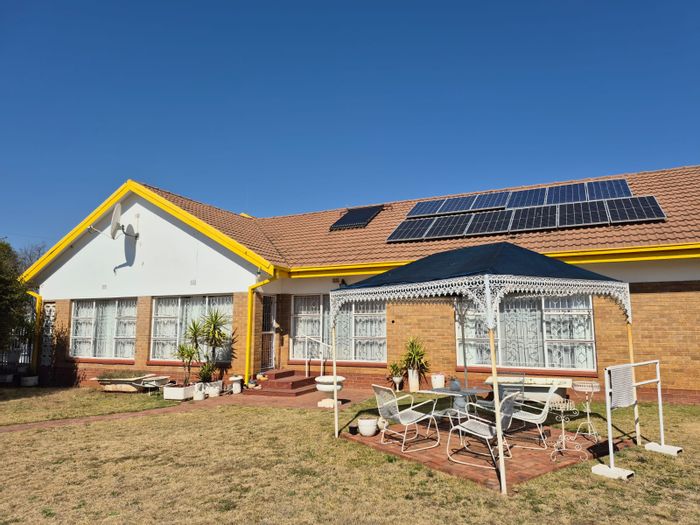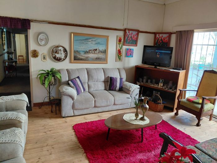 Family-focused entertaining and relaxed Vredefort living with expansive garden and enclosed lapa with built-in braai — borehole-fed, main bedroom en-suite; four bedrooms and multiple secure garages.