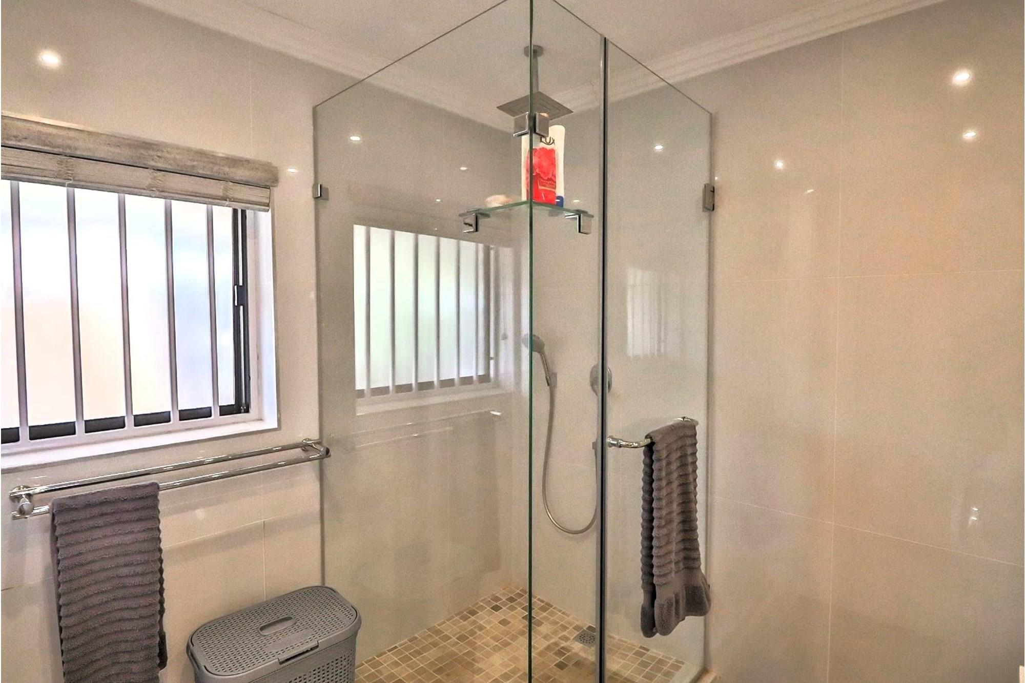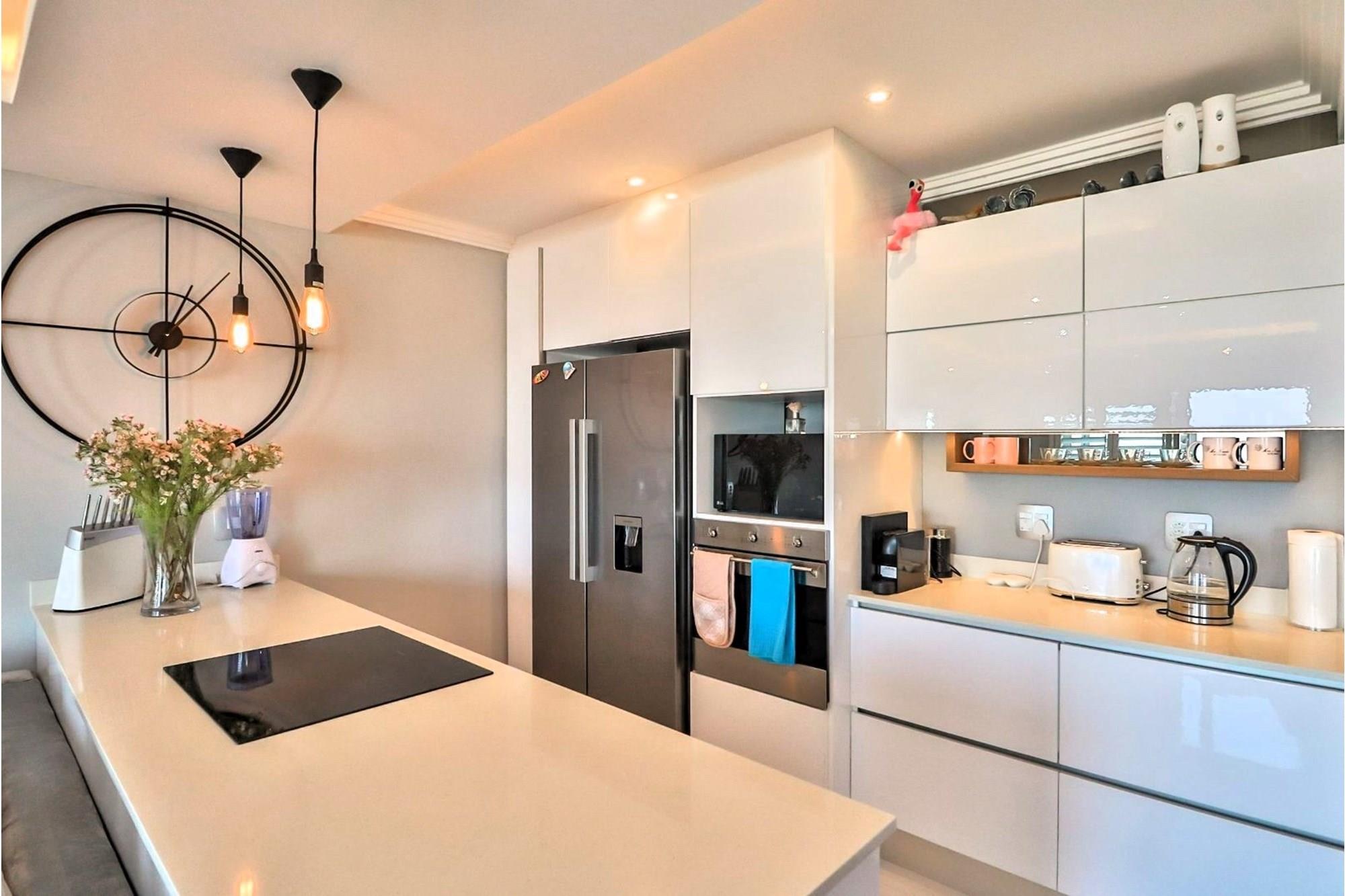 The luxurious touches extend to the bathrooms, where big white porcelain tiles adorn the walls and floors, creating a spa-like ambiance. Sliding mirror cupboards in the bedrooms offer ample storage space, while a pantry cupboard and meticulously designed cupboards by Kitchen Studio ensure organizational bliss.