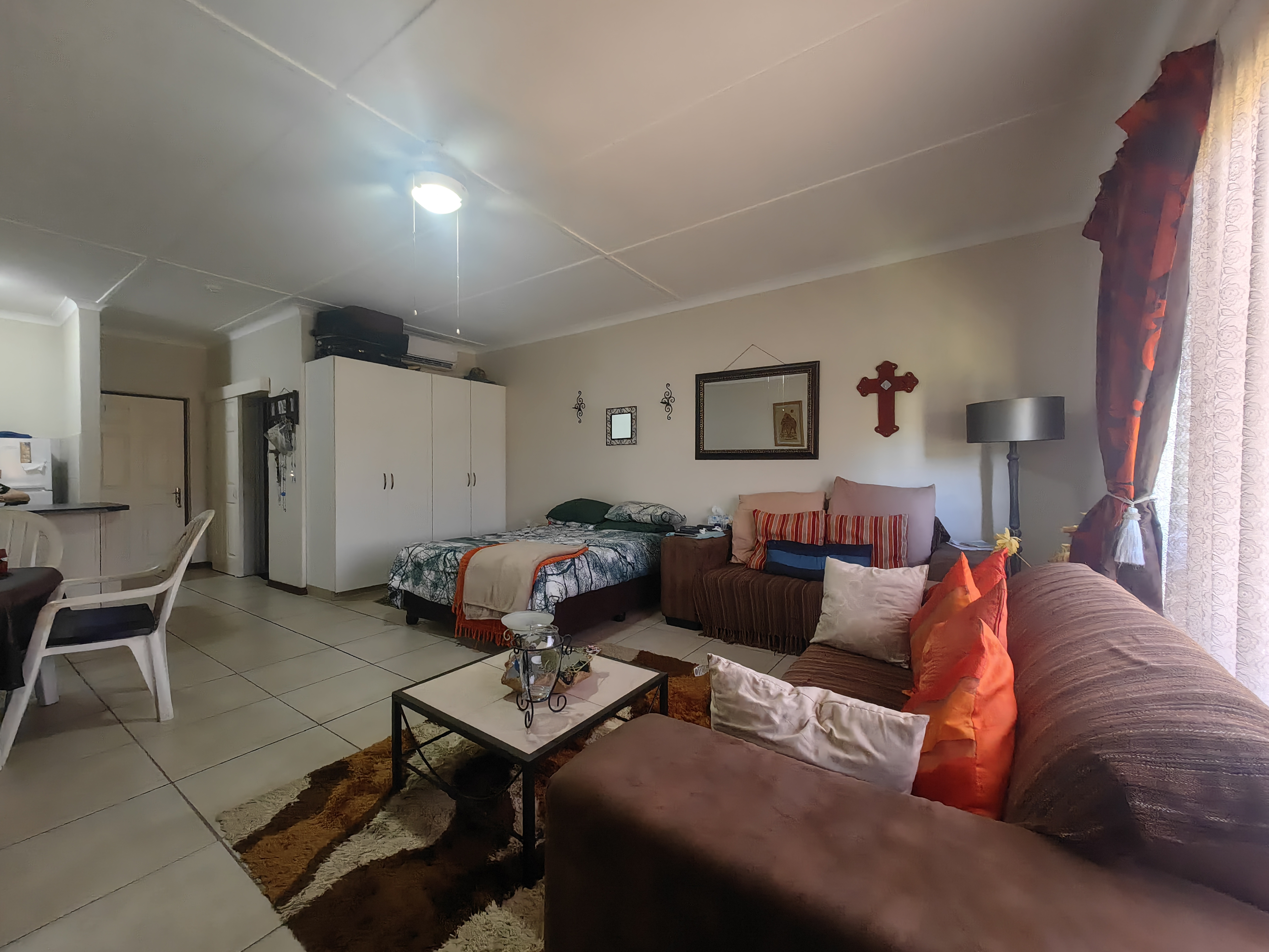 The bedsit features a neatly fitted kitchen and a spacious open-plan living and sleeping area, easily accommodating a small dining table and comfortable lounge suite, creating a cosy yet functional home.