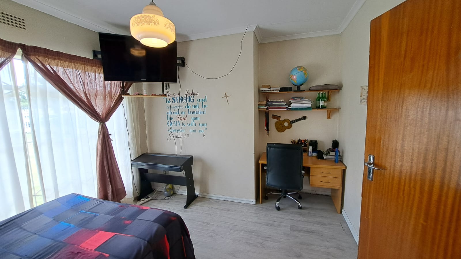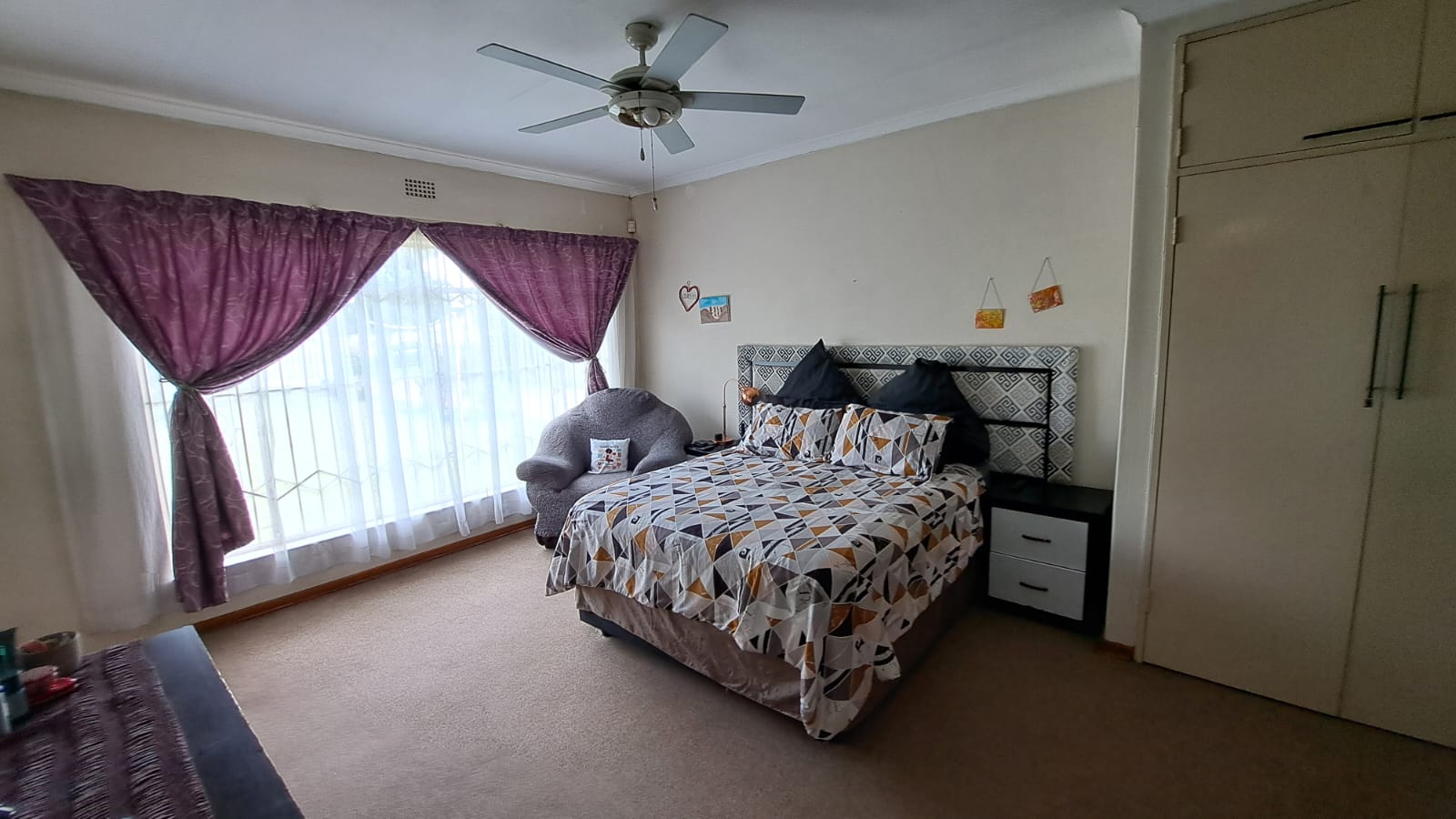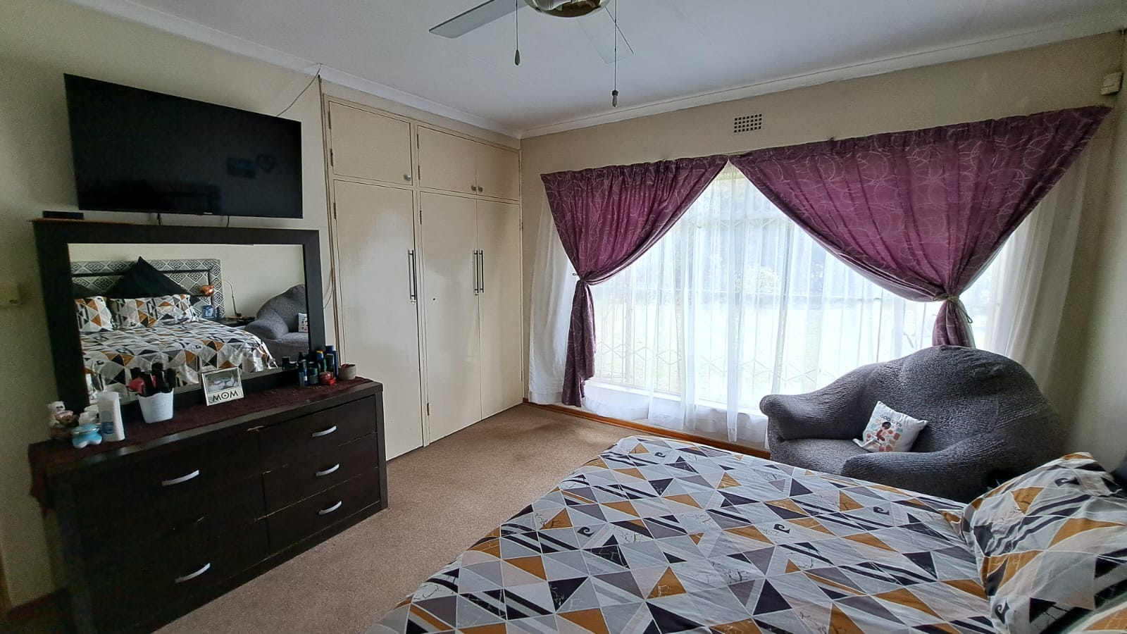 Bedrooms – Spacious and light-filled, featuring ceiling fans, carpeted main bedroom, and TV connections.