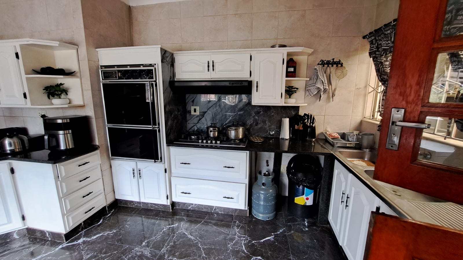 White wooden cupboards & cupboard pantry