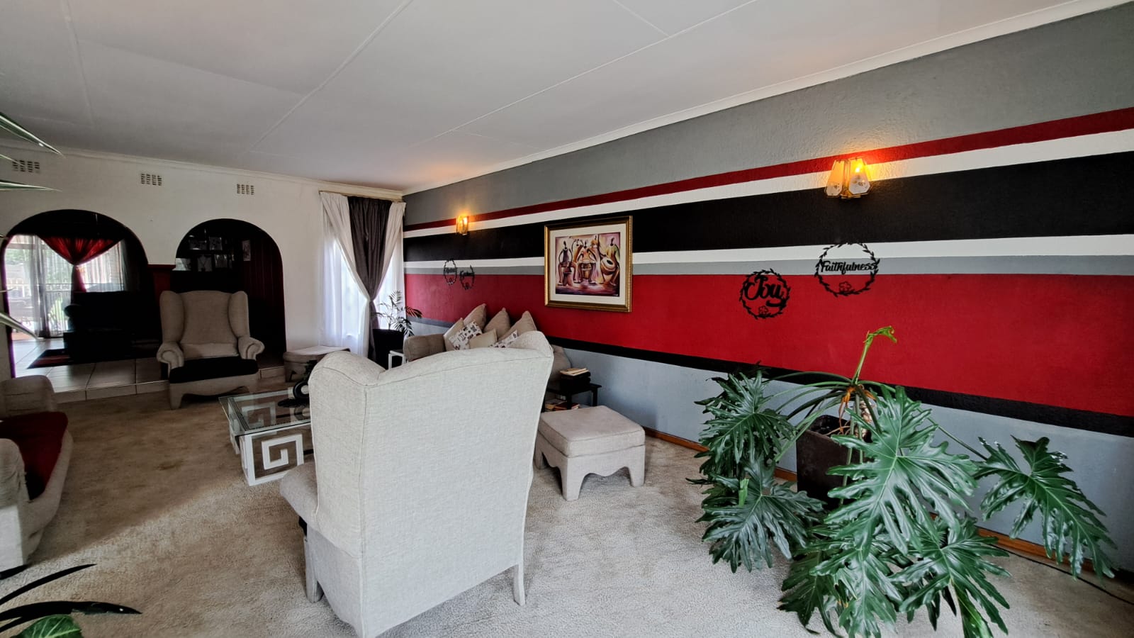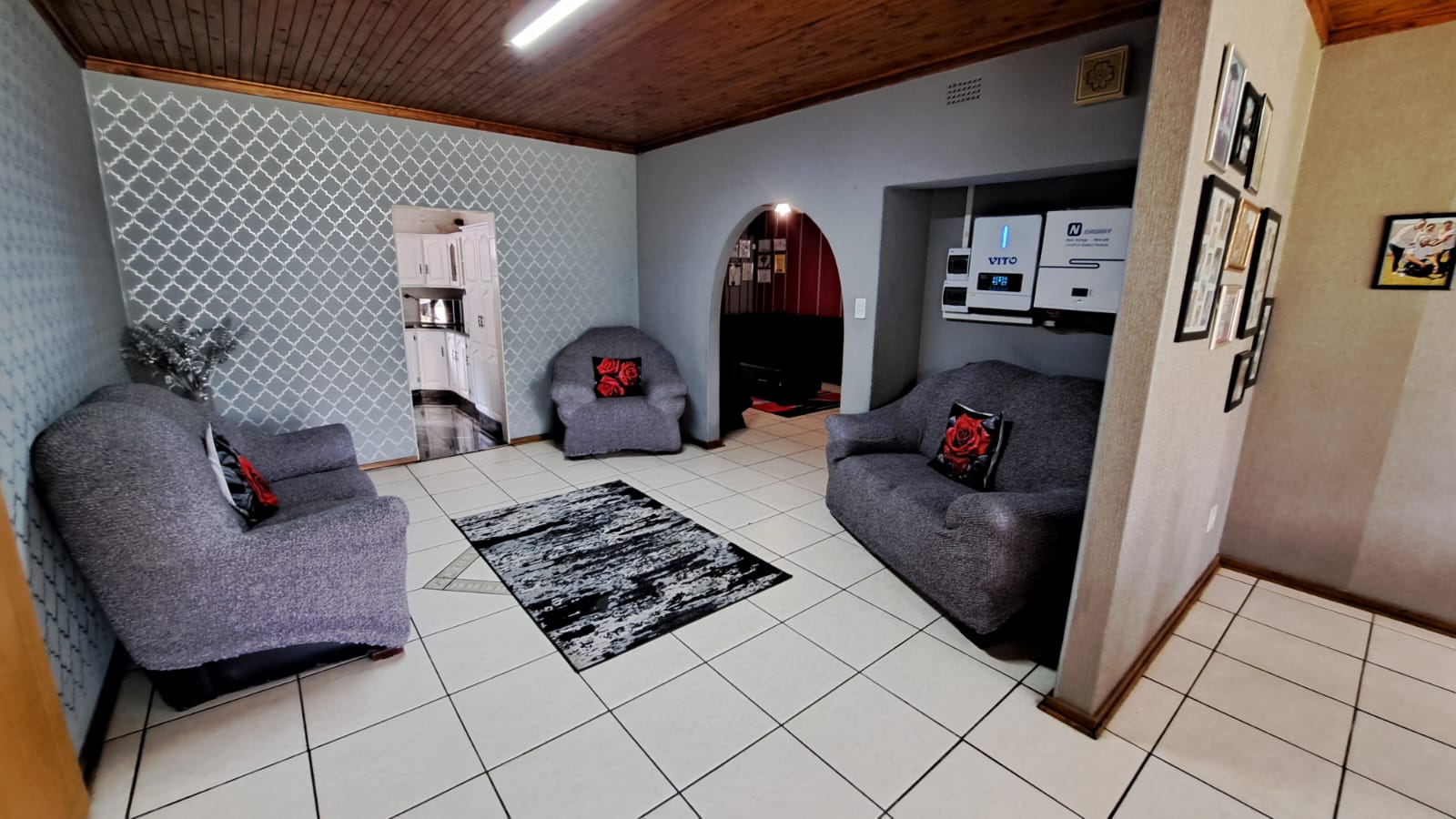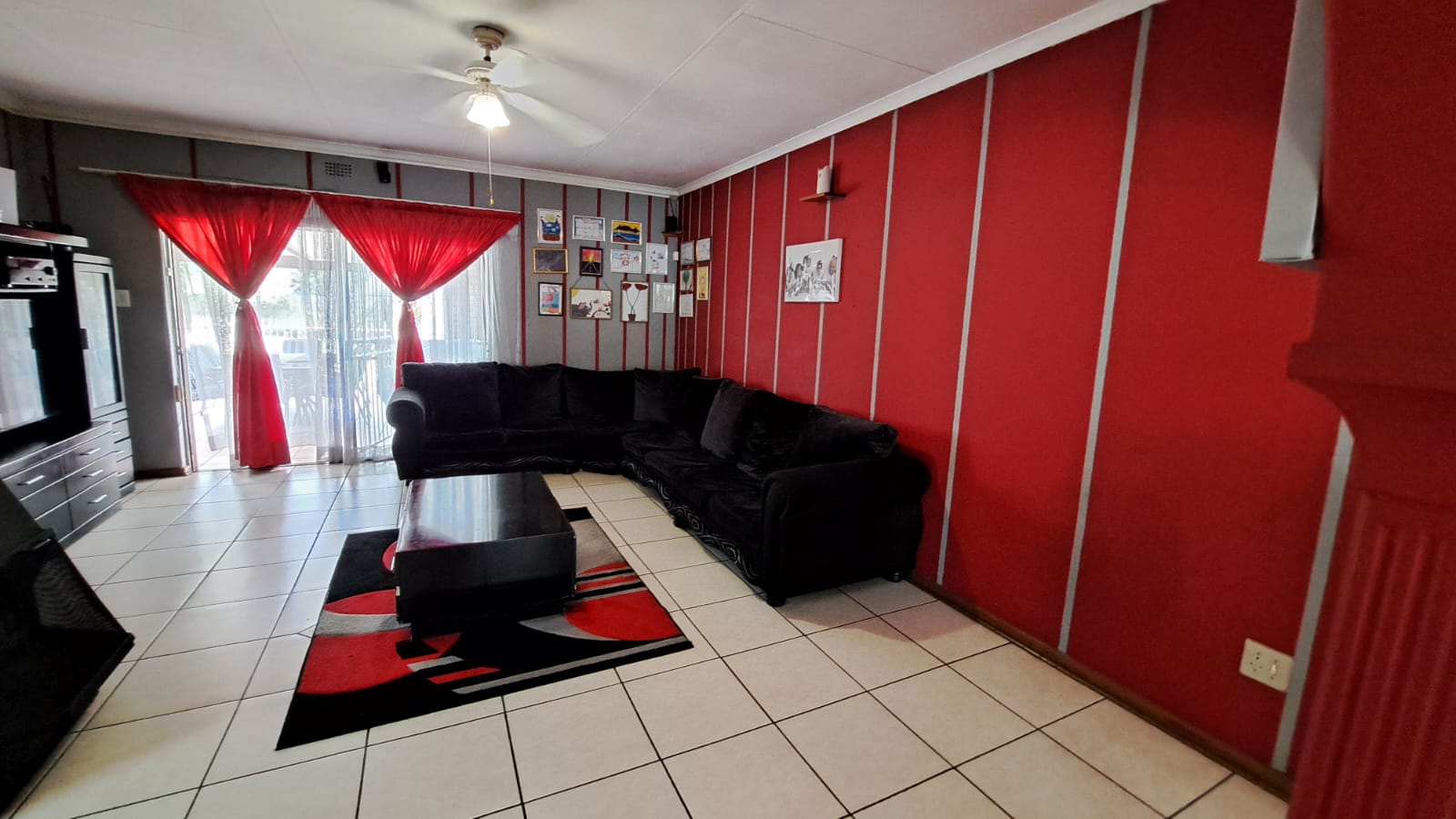 Open-Plan Living – Lounge, dining area, and TV room flow seamlessly, all with tiled floors.
