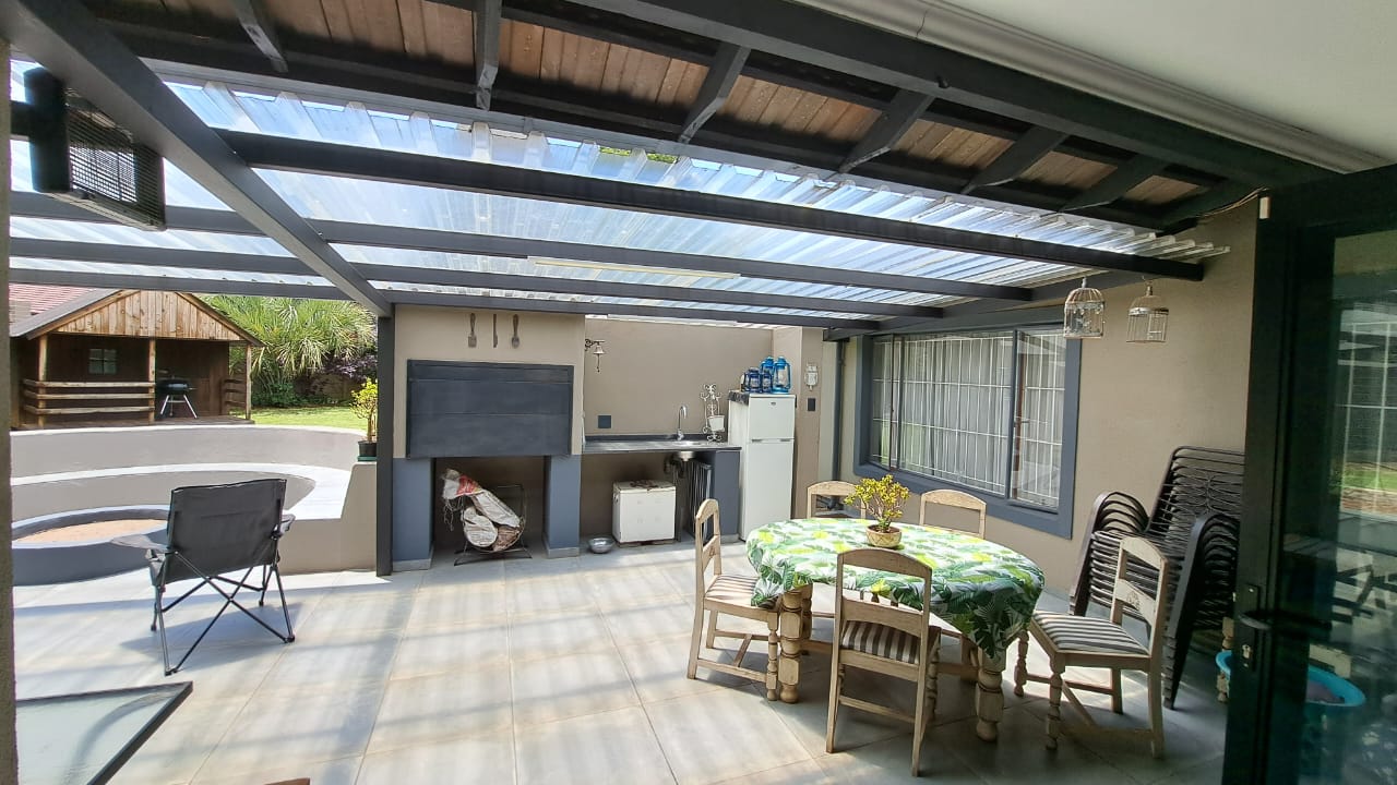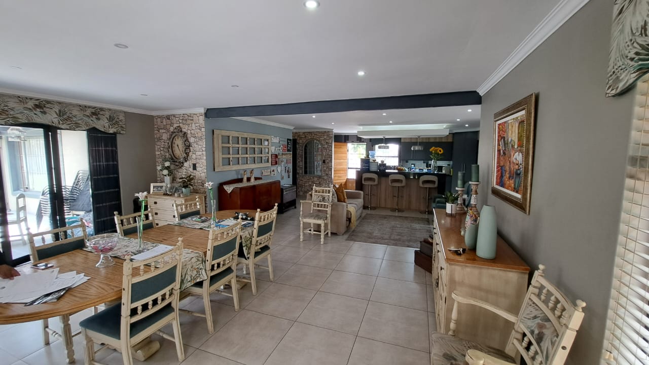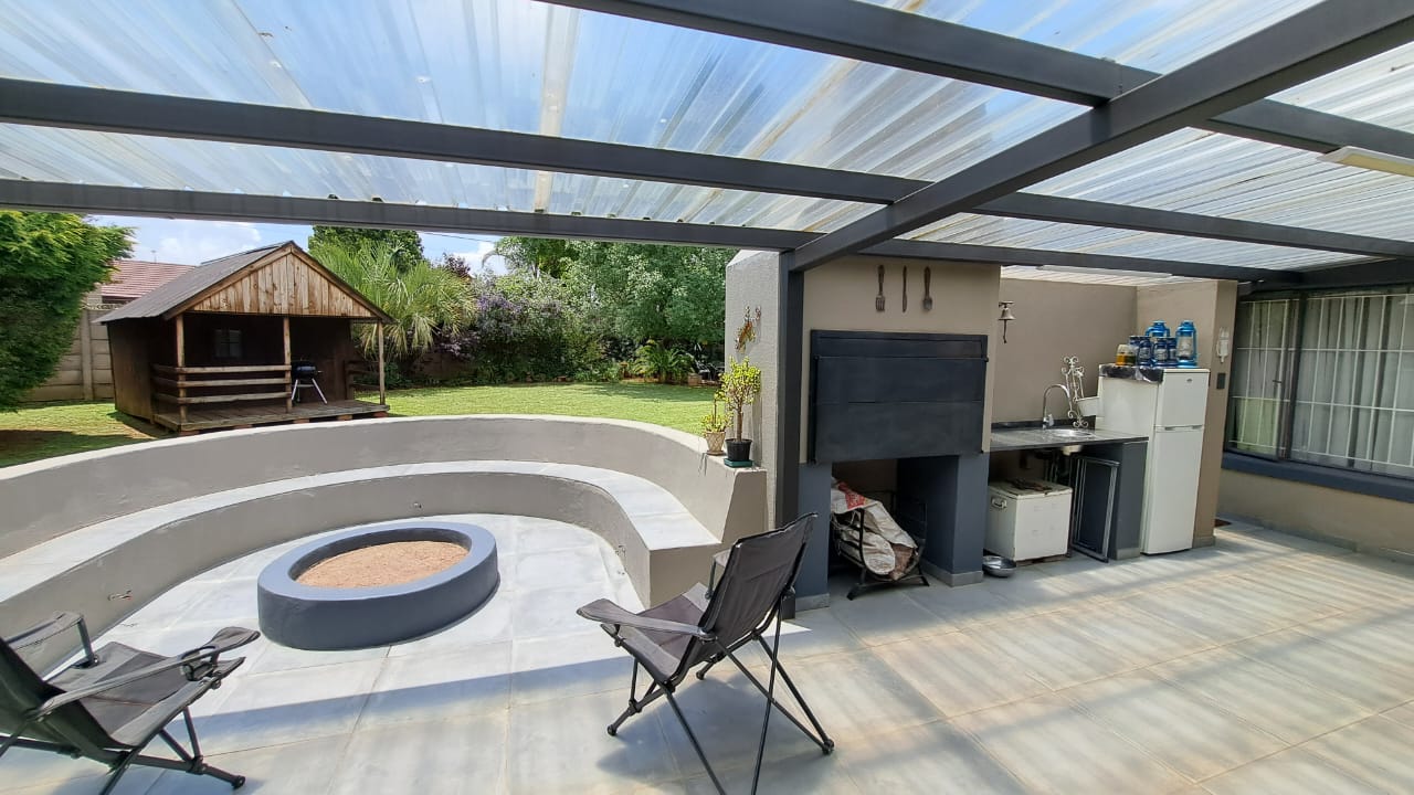 Inside, the home flows effortlessly with its open-plan layout that brings the TV room, dining room, lounge and kitchen into one bright, modern space. Newly updated finishes including tiled flooring, stylish blinds and aluminium windows give the home a fresh and contemporary feel. The seamless transition to the covered patio, complete with a built-in braai and a dedicated outdoor entertainment area featuring a firepit, creates an inviting atmosphere for relaxed family evenings or memorable gatherings with friends.