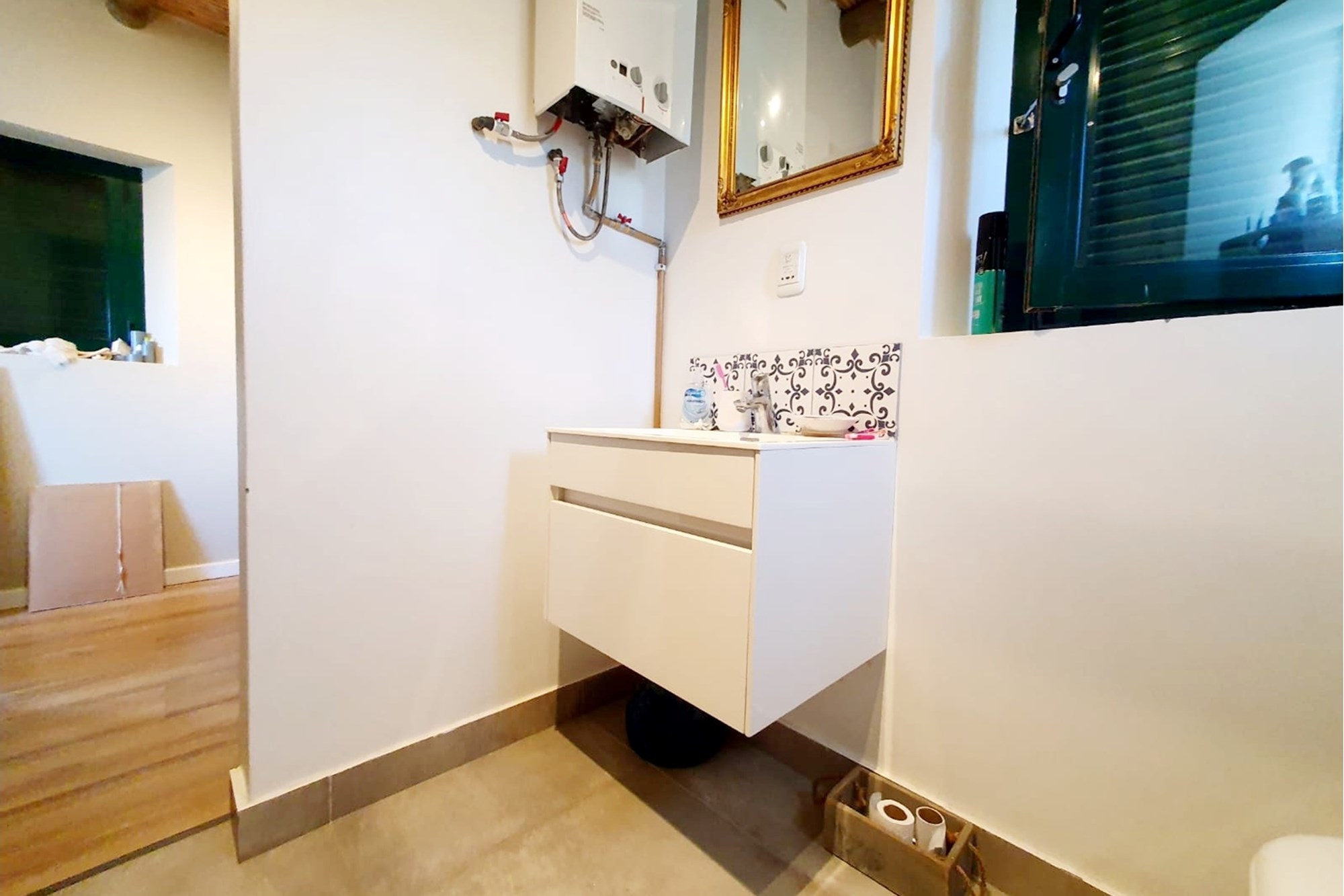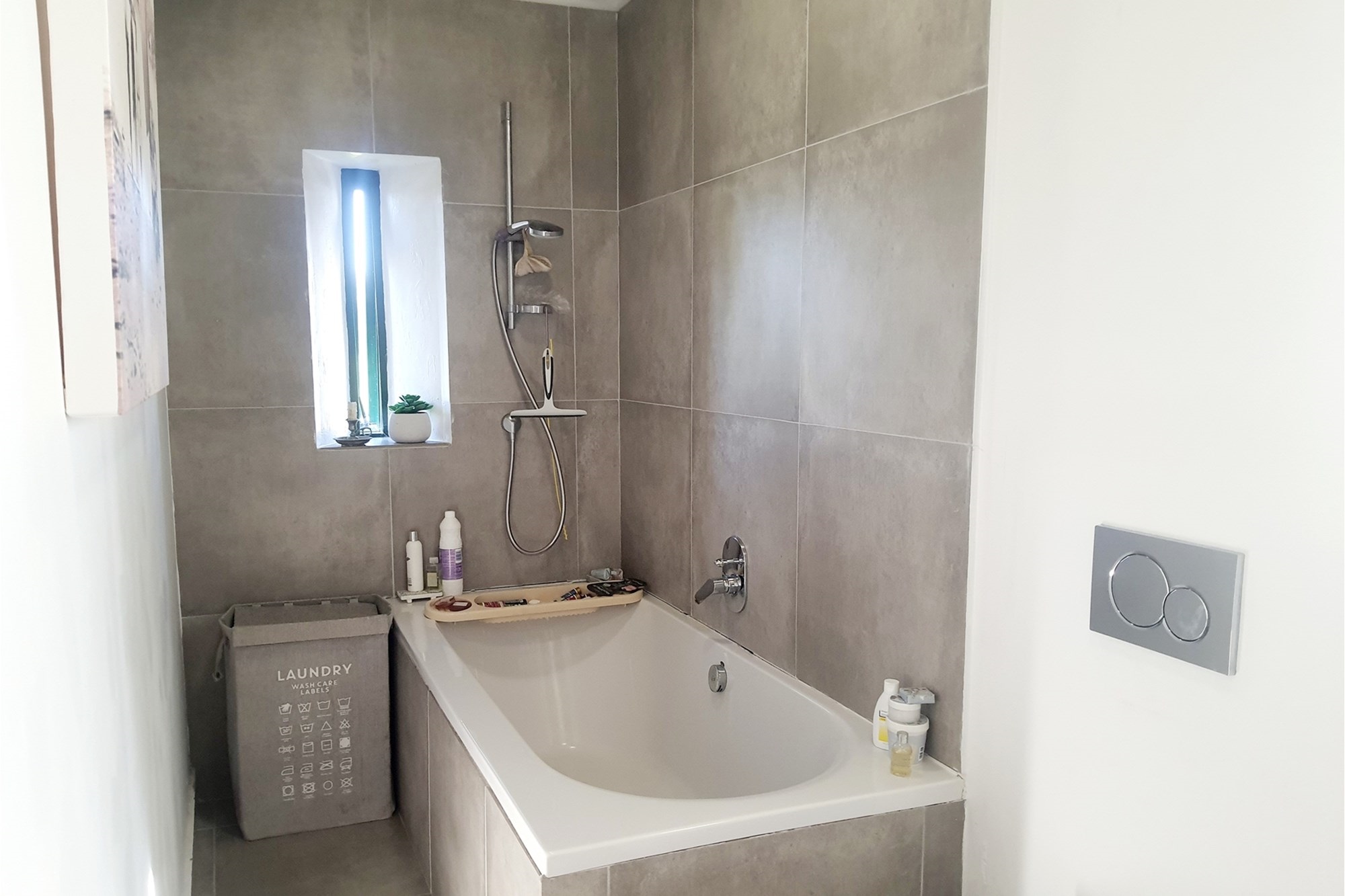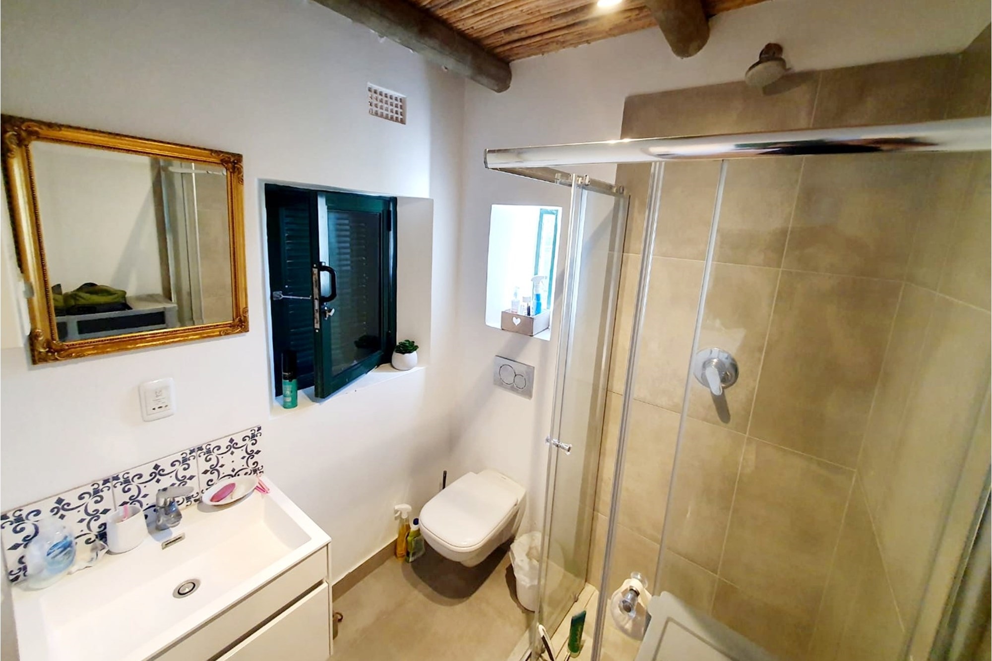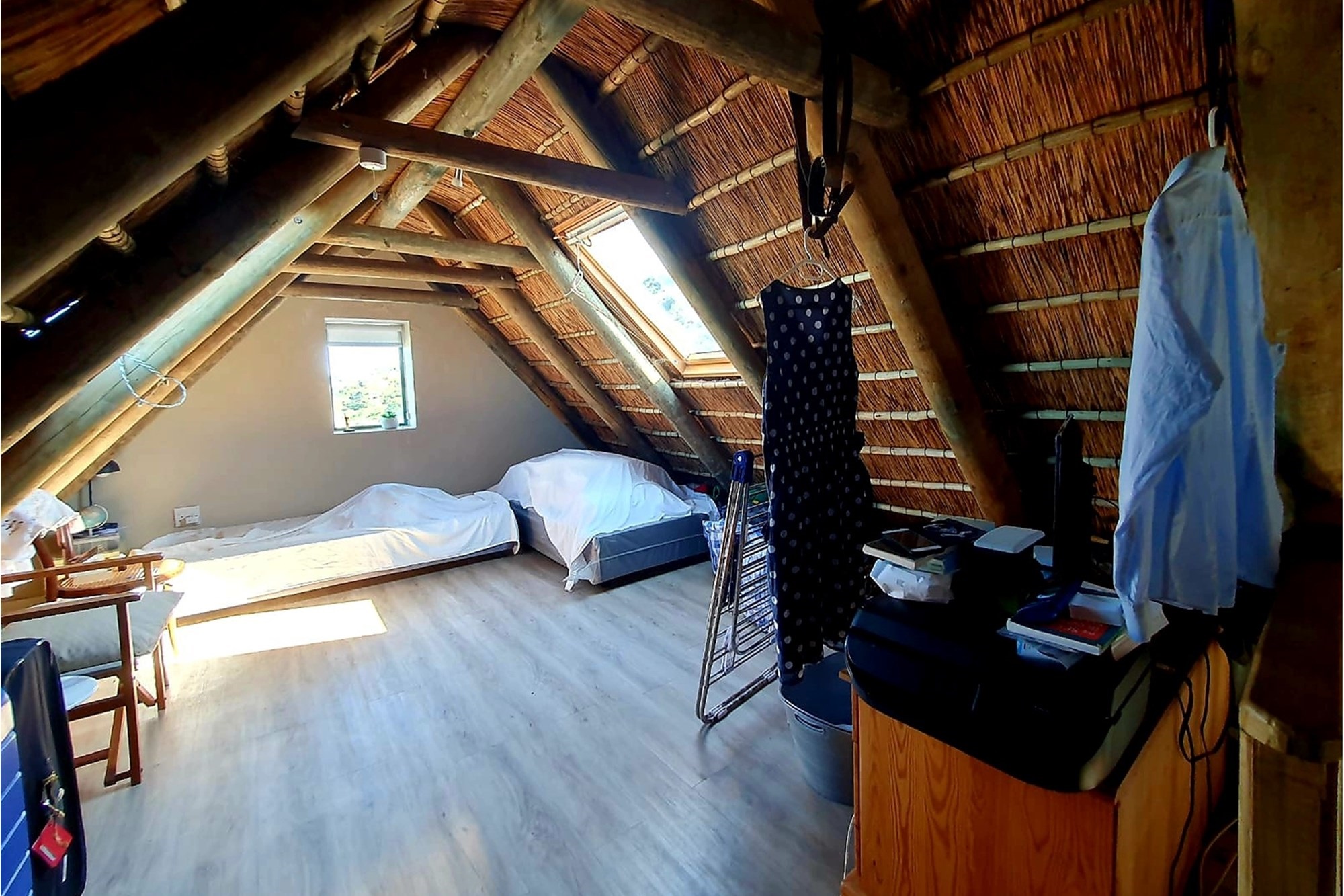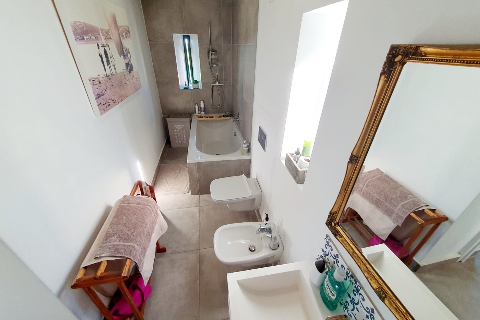 On the opposite wing, the second bedroom provides ideal guest privacy and is served by its own bathroom, which doubles as a guest loo. The loft, with twin skylights, is light-filled and versatile—ideal as a third bedroom, home office or cosy TV nook. Two additional rooms currently used for storage open onto the courtyard and can easily be transformed into extra bedrooms or creative spaces.