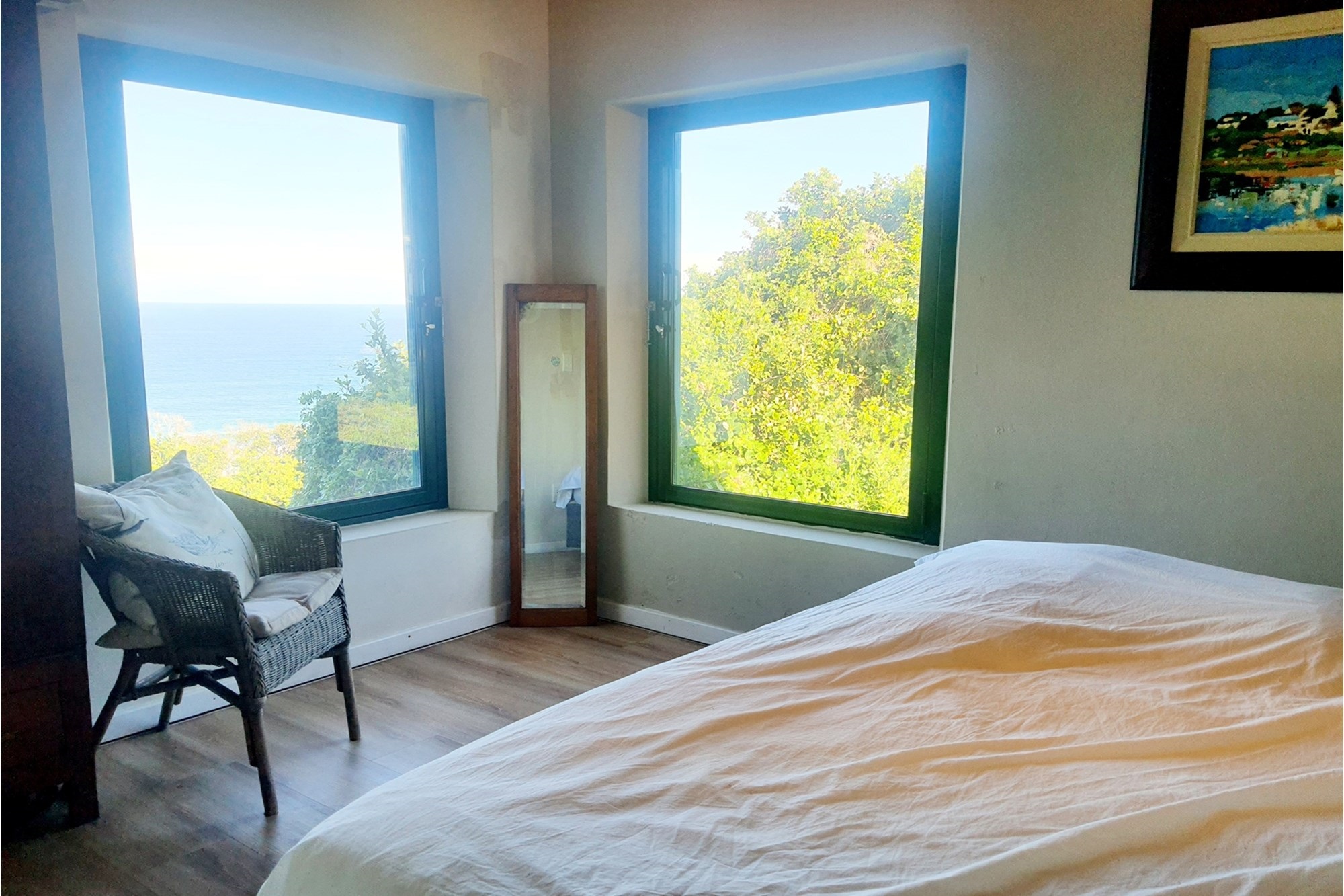 Step inside and enjoy an open-plan kitchen and living area that flows out to a full-length seafront deck—perfect for soaking up the sun, watching passing whales, or simply enjoying the silence. The main en-suite bedroom looks straight out to sea and also opens directly onto a peaceful central courtyard, complete with an outdoor shower and basin.