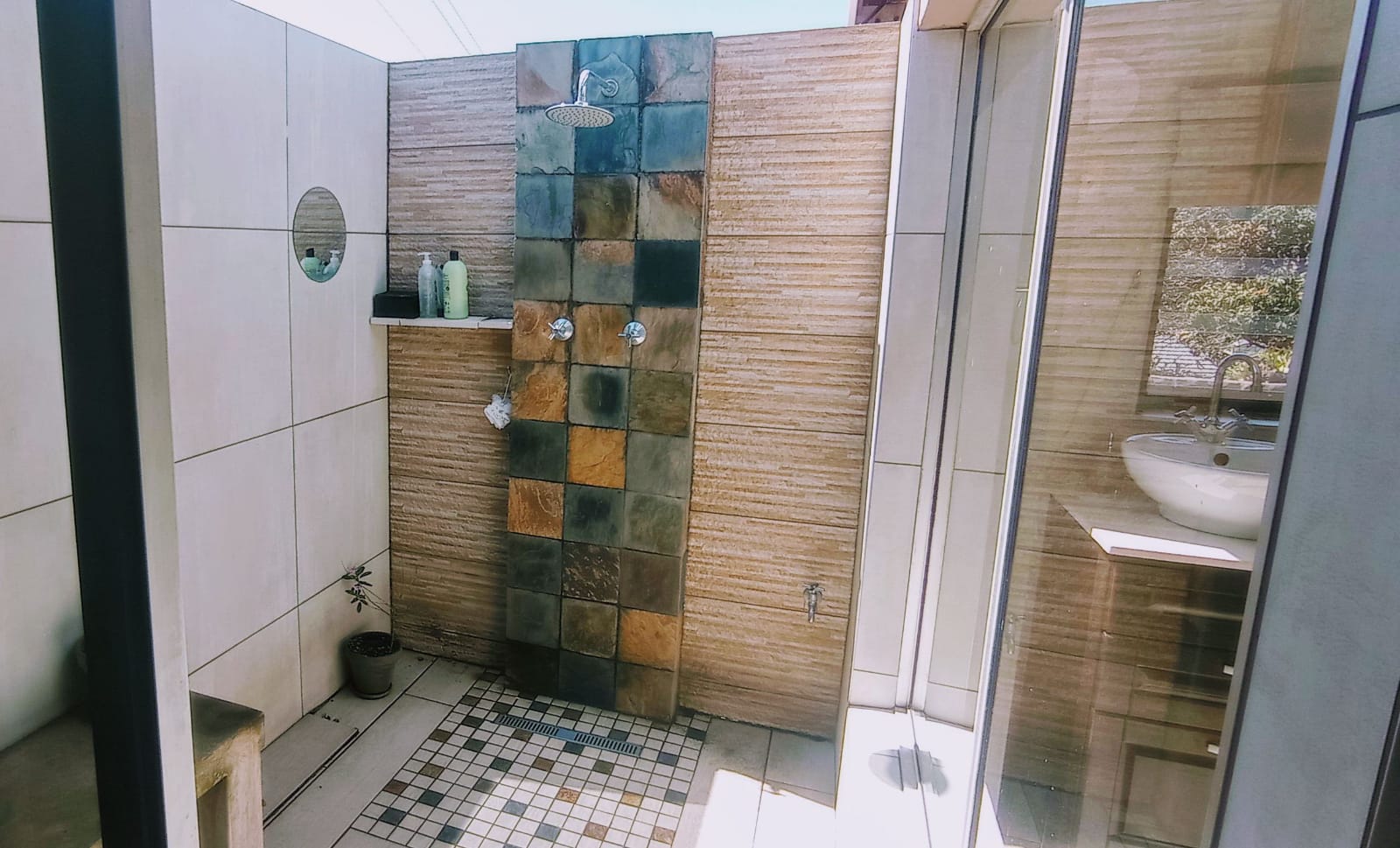 Step inside to a spacious lounge and dining area, a fitted kitchen with ample cupboard space, scullery, and laundry room. All bedrooms include built-in cupboards, while the main bedroom features a luxurious en-suite bathroom and a one-of-a-kind outdoor shower — perfect for unwinding under the night sky.