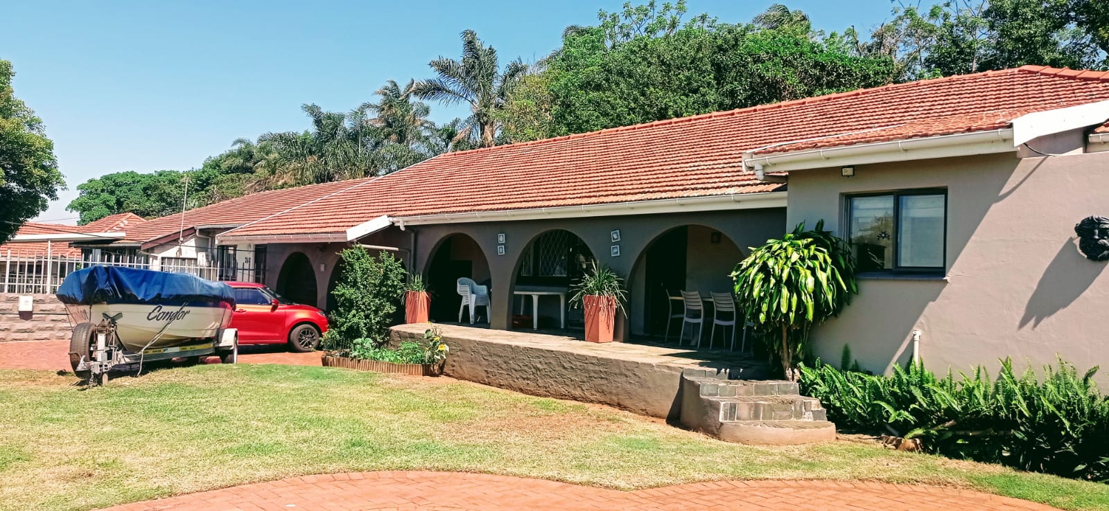 Upon entry, an automated main gate welcomes you, ensuring peace of mind and convenience. The property opens up to a flat, level yard with ample parking for up to four vehicles, ideal for entertaining or accommodating a growing household. Enjoy Durban’s warm summers with a sparkling swimming pool, and take advantage of the double garage with automated doors for added ease.