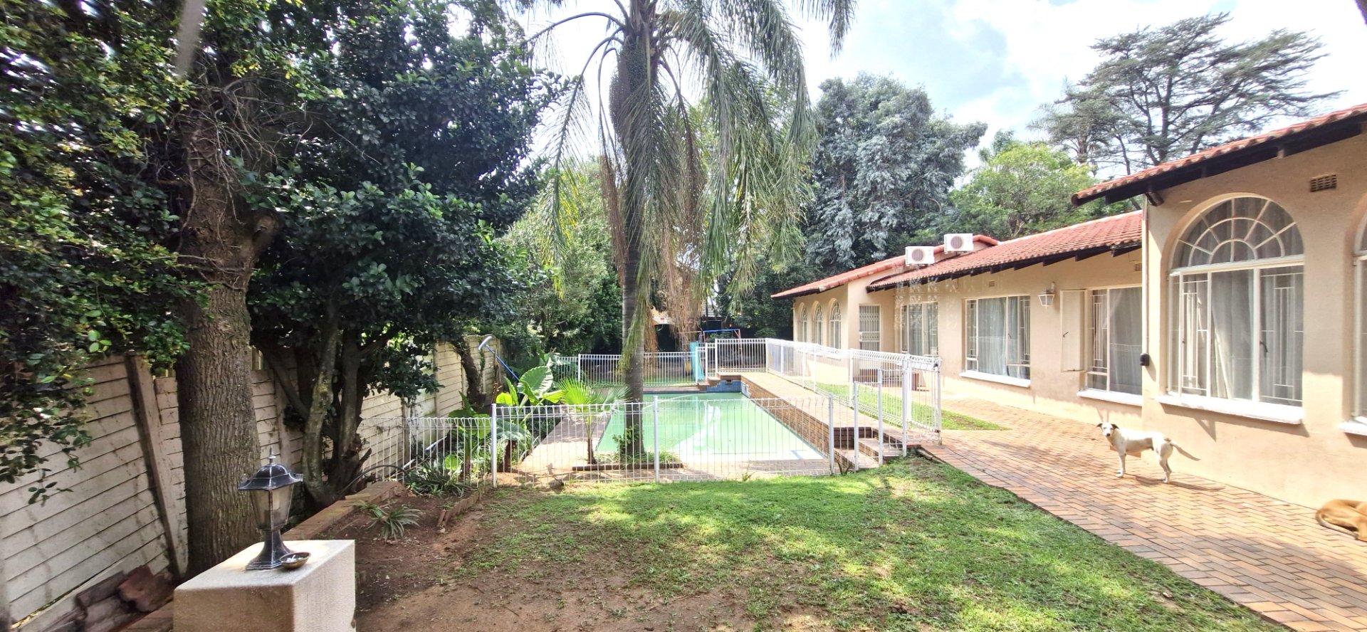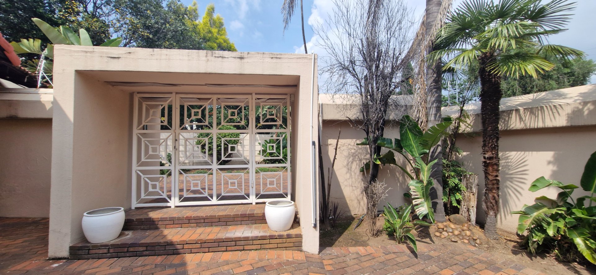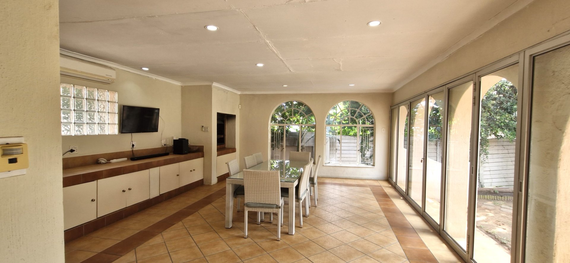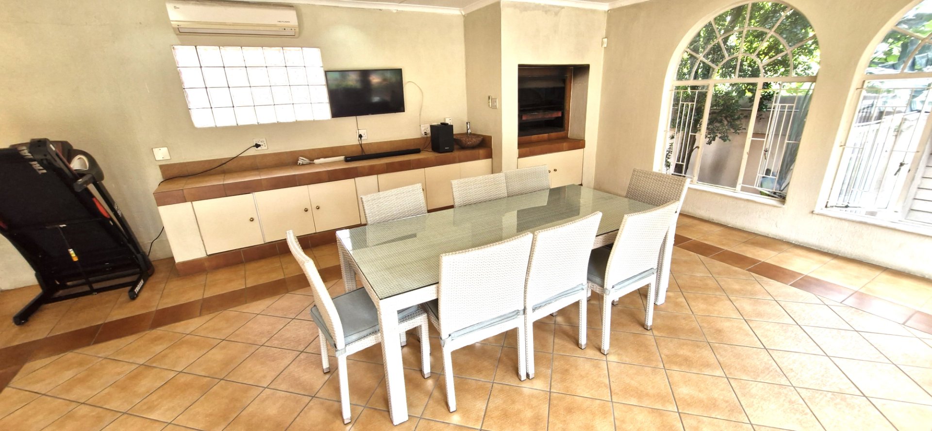 Enclosed Patio With Braai Leading Onto Beautiful Lush Garden And Pool Area.