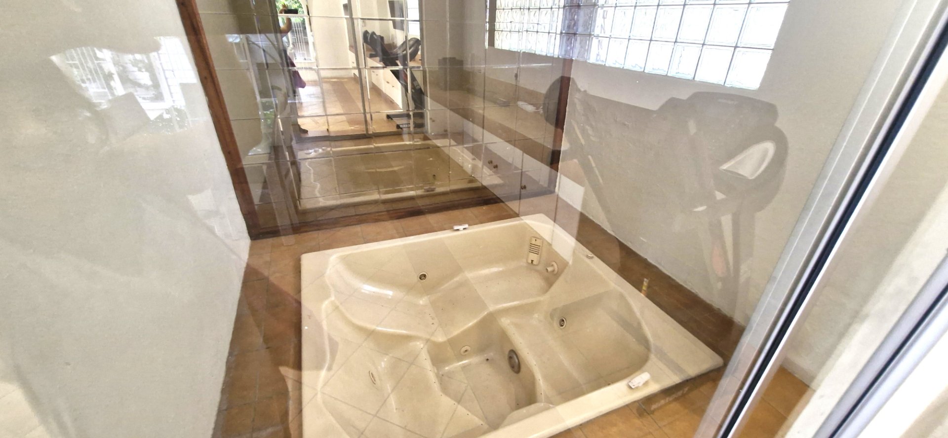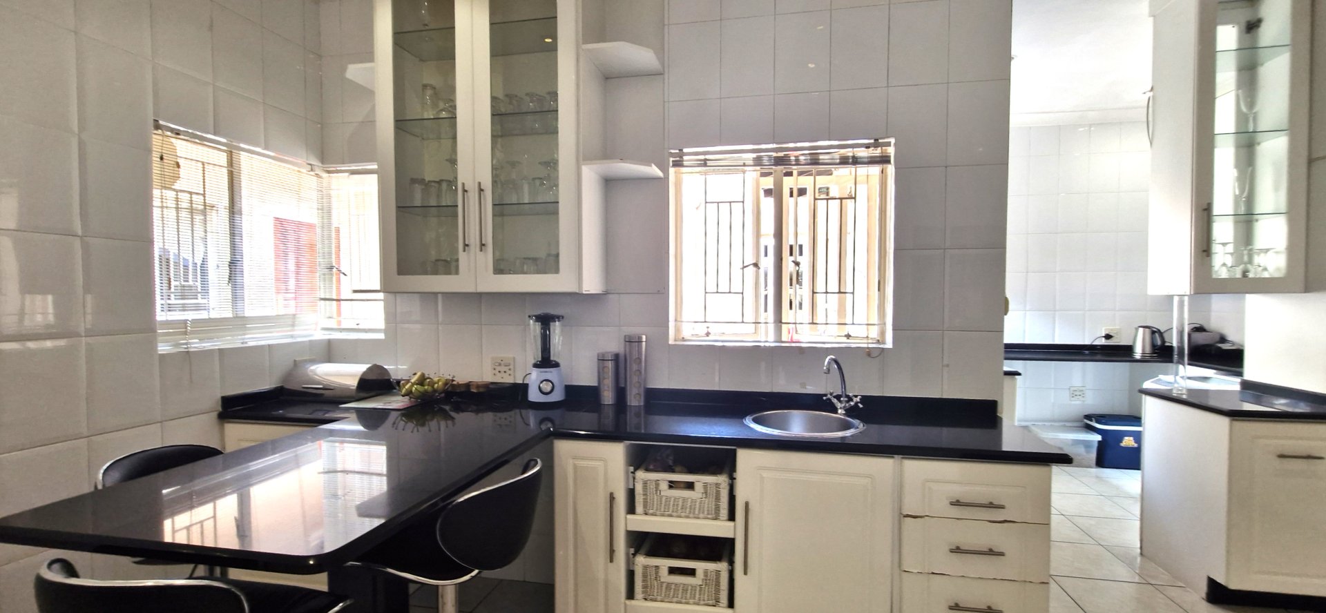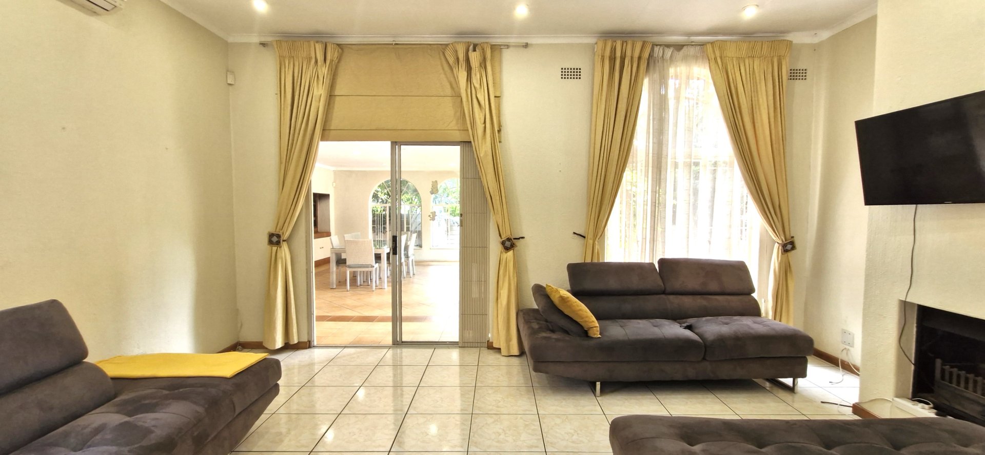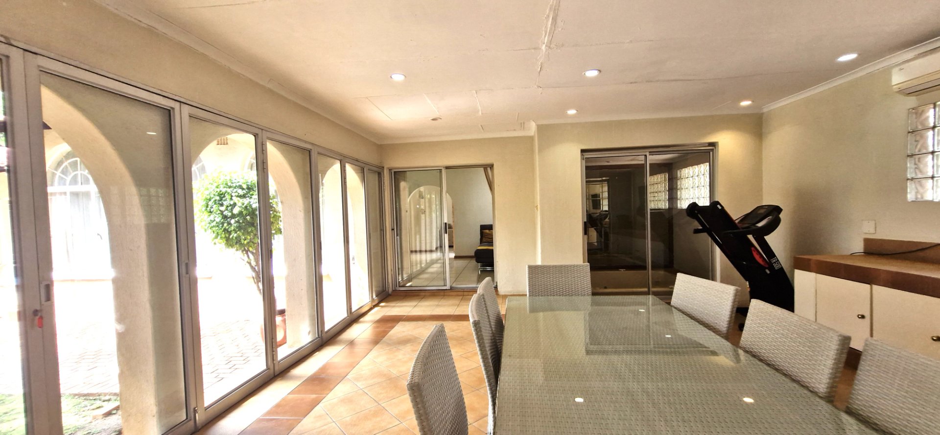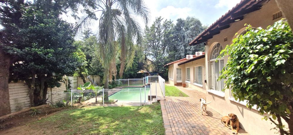 Enclosed Patio With Braai Leading Onto Beautiful Lush Garden And Pool Area.