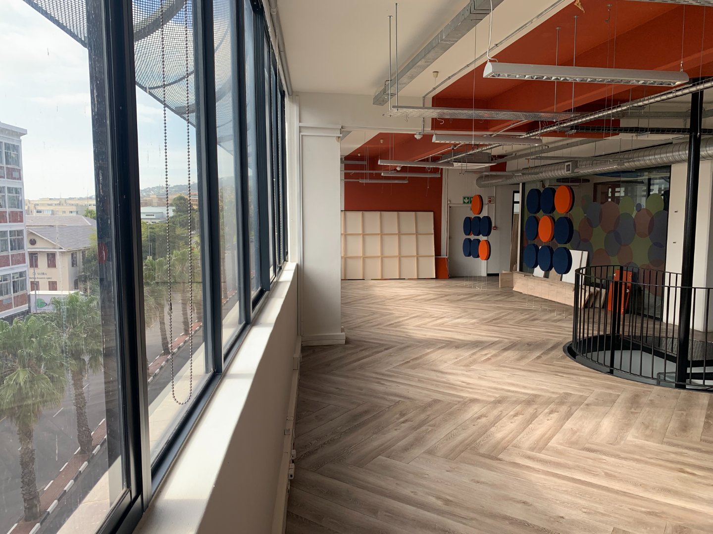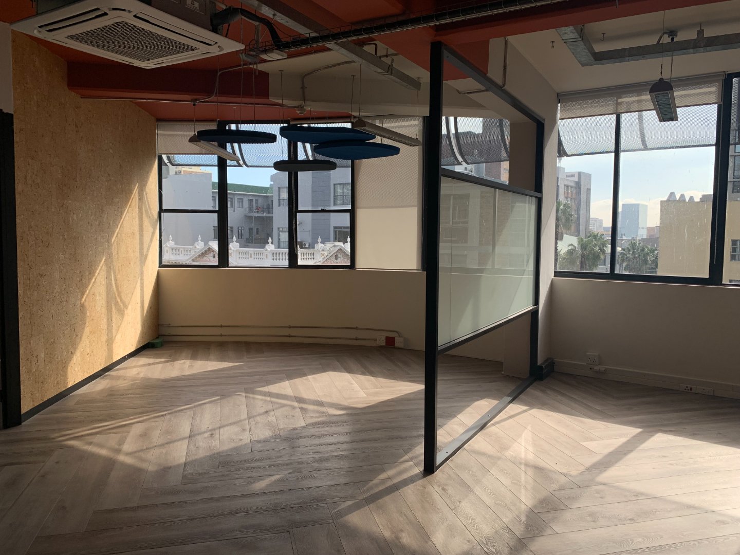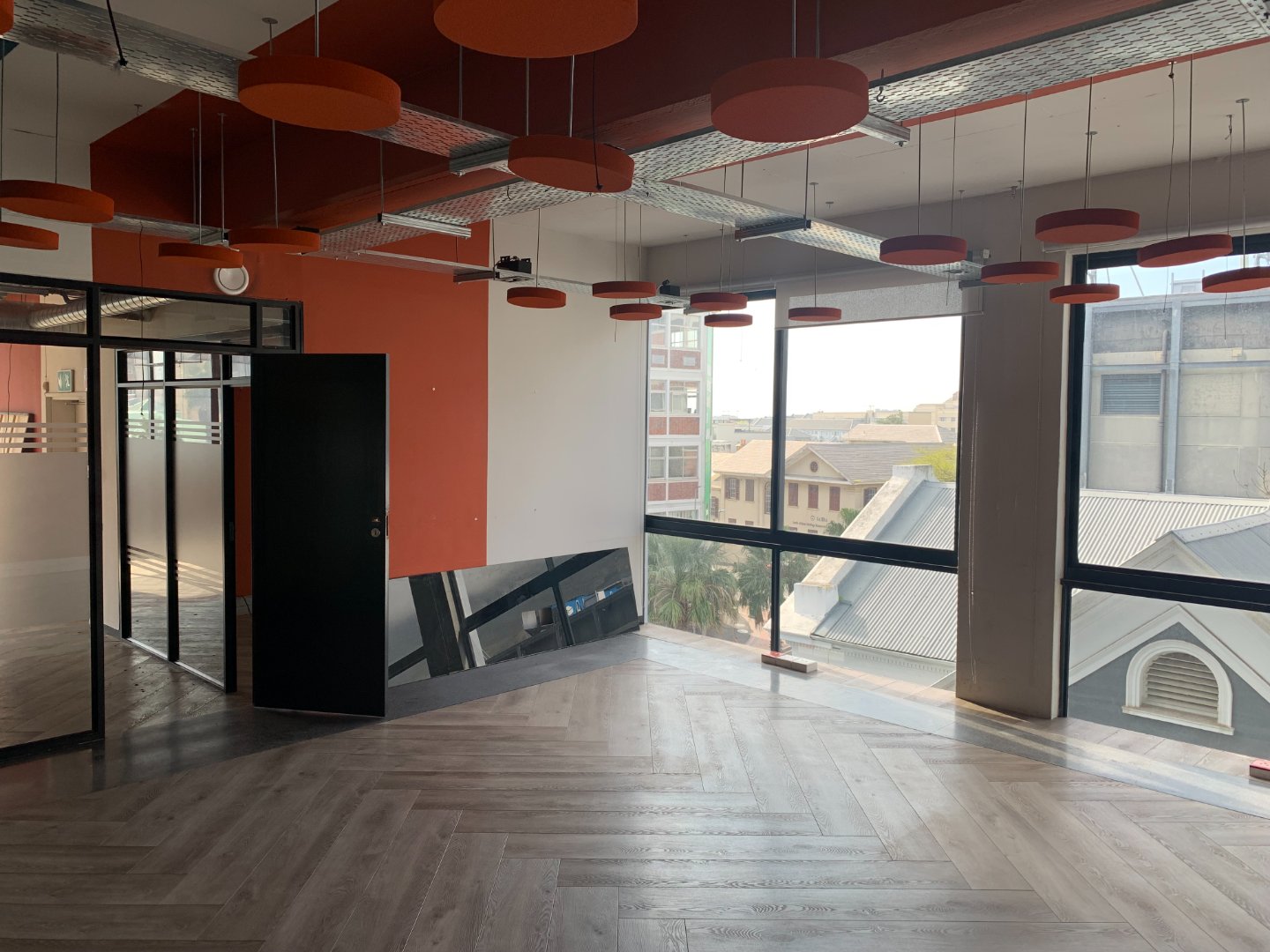 The building offers manned security at the front desk and two lifts that take you straight up to your modern workspace. Inside you will find a light filled office with windows all round, flooding the space with natural light and framing stunning views of town, Table Mountain, Lion’s Head and Devil’s Peak. The entire space carries an open and airy feel with a unique corporate and industrial edge. Flooring throughout the office is a stylish mix of carpet, laminate and screed, complementing the modern design and flexible layout.