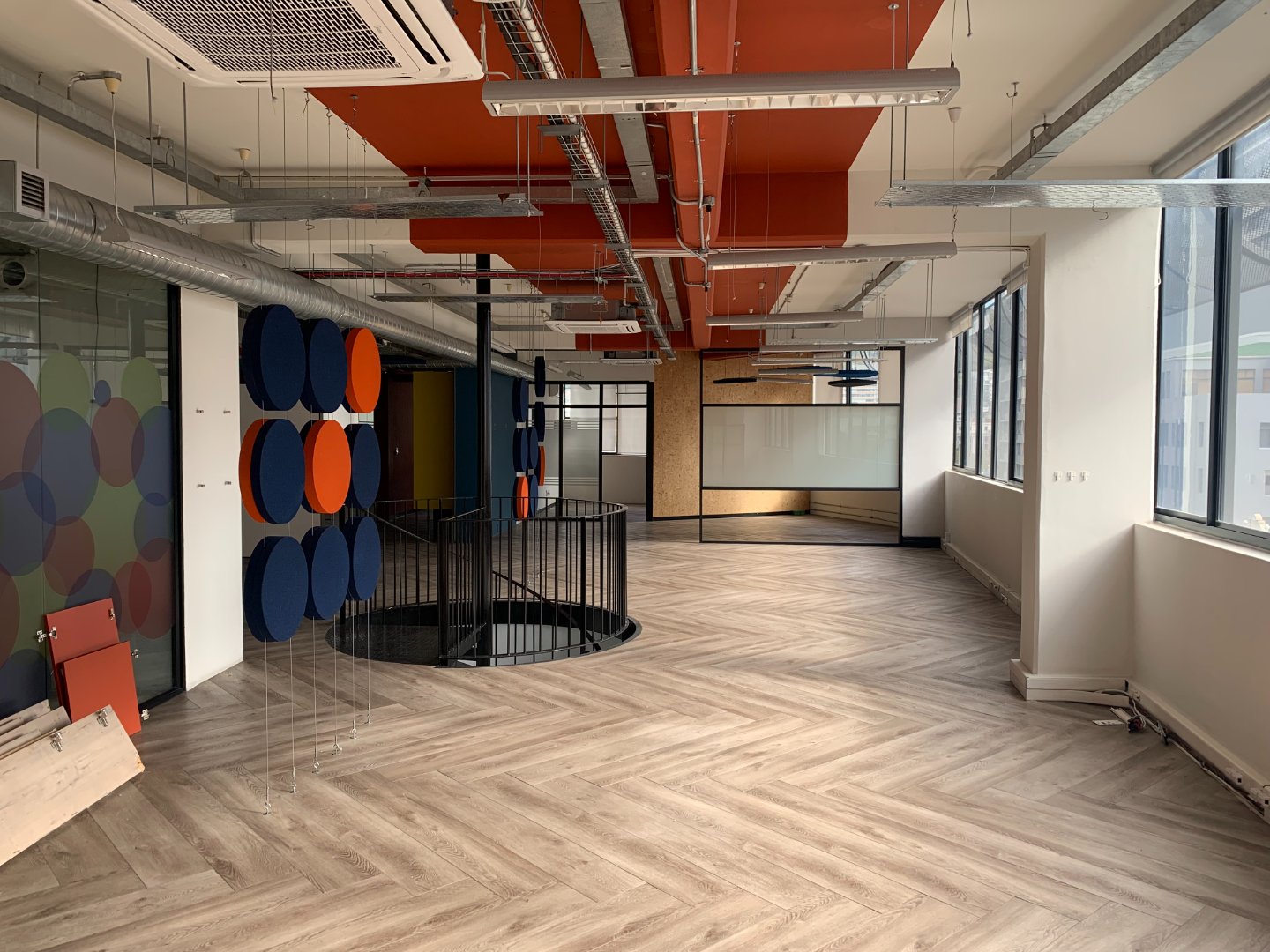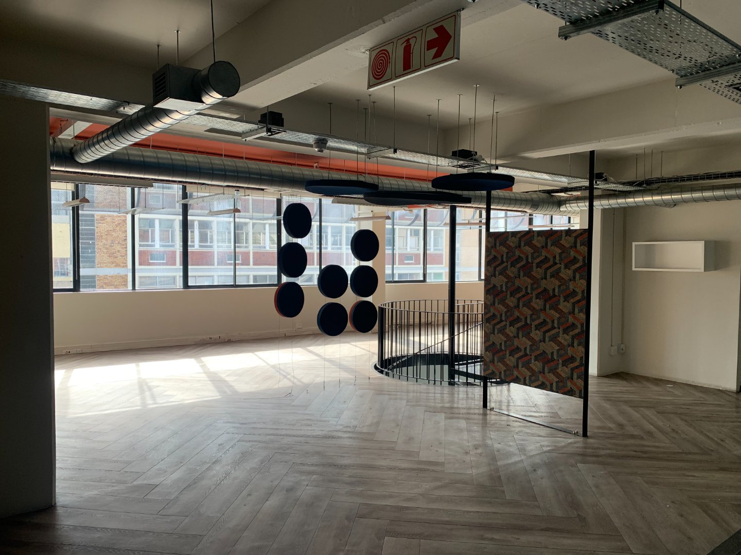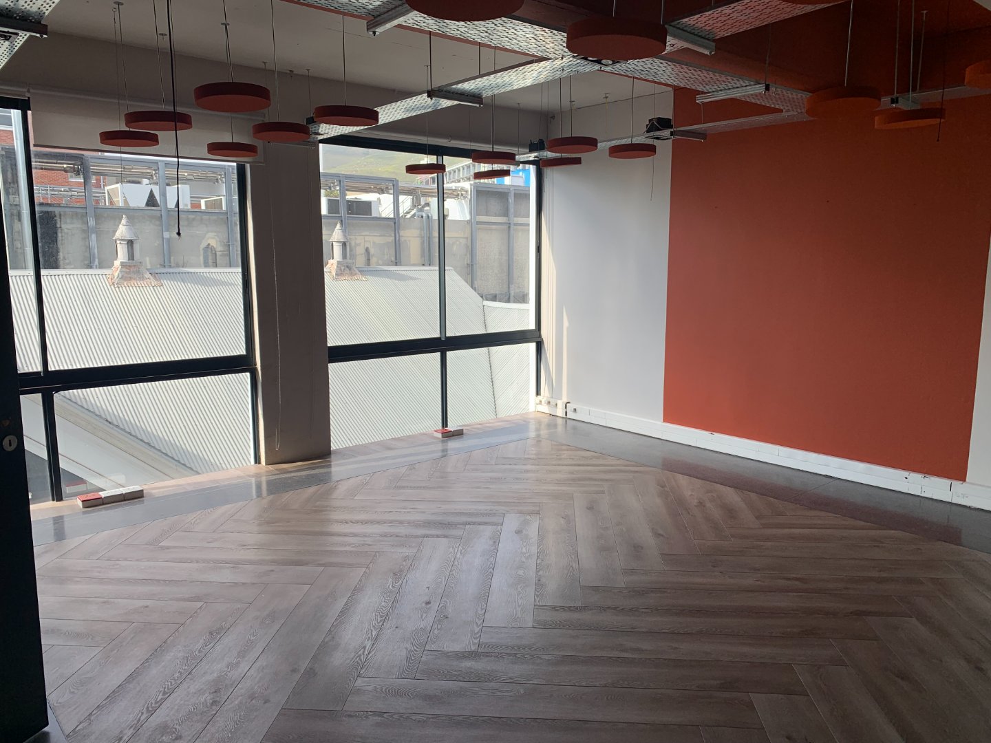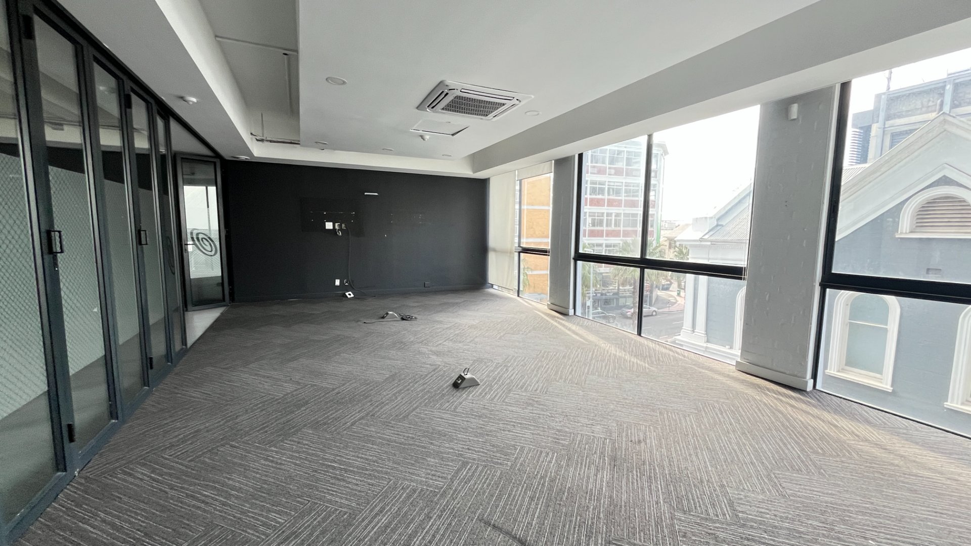The building offers manned security at the front desk and two lifts that take you straight up to your modern workspace. Inside you will find a light filled office with windows all round, flooding the space with natural light and framing stunning views of town, Table Mountain, Lion’s Head and Devil’s Peak. The entire space carries an open and airy feel with a unique corporate and industrial edge. Flooring throughout the office is a stylish mix of carpet, laminate and screed, complementing the modern design and flexible layout.