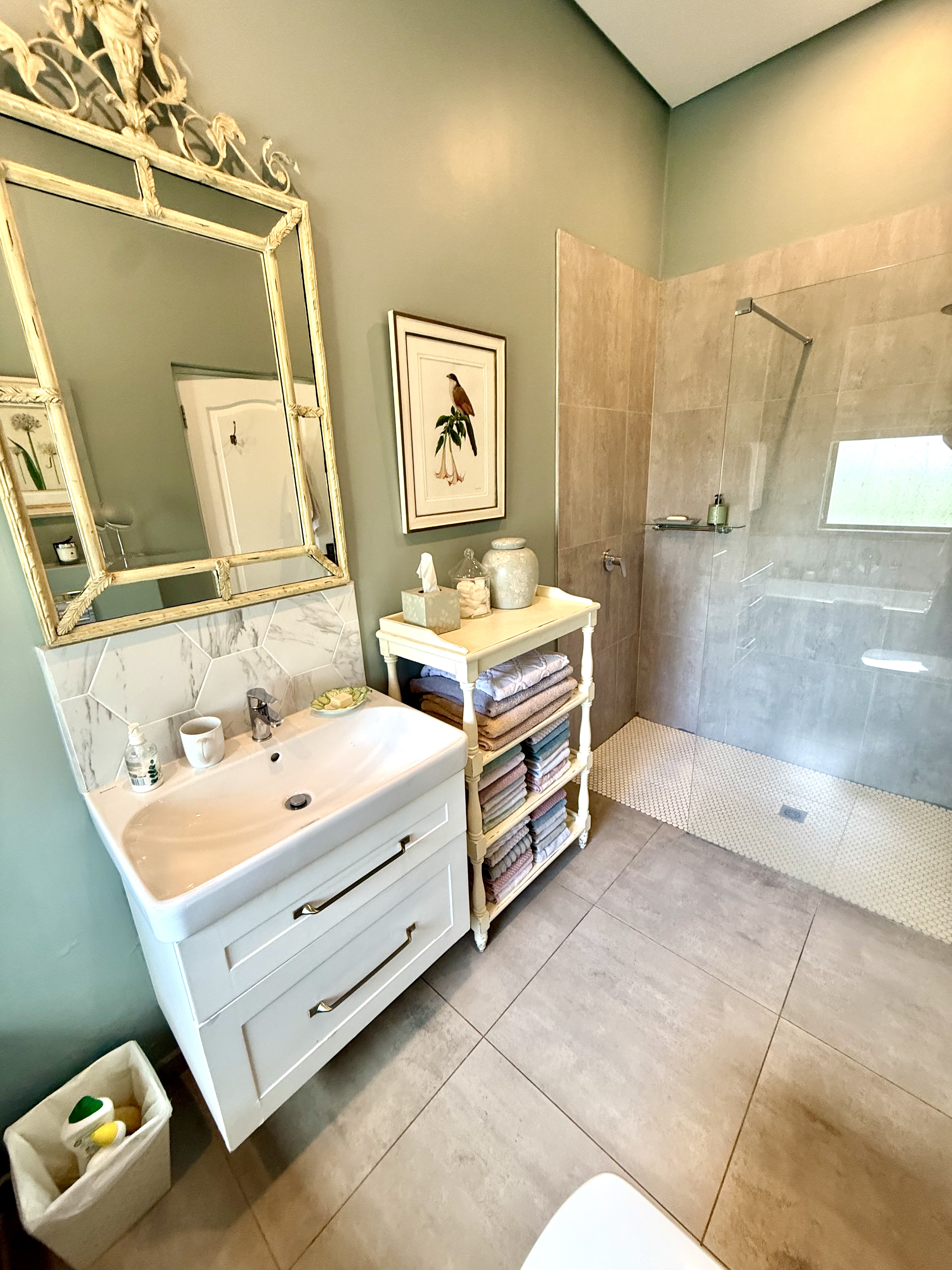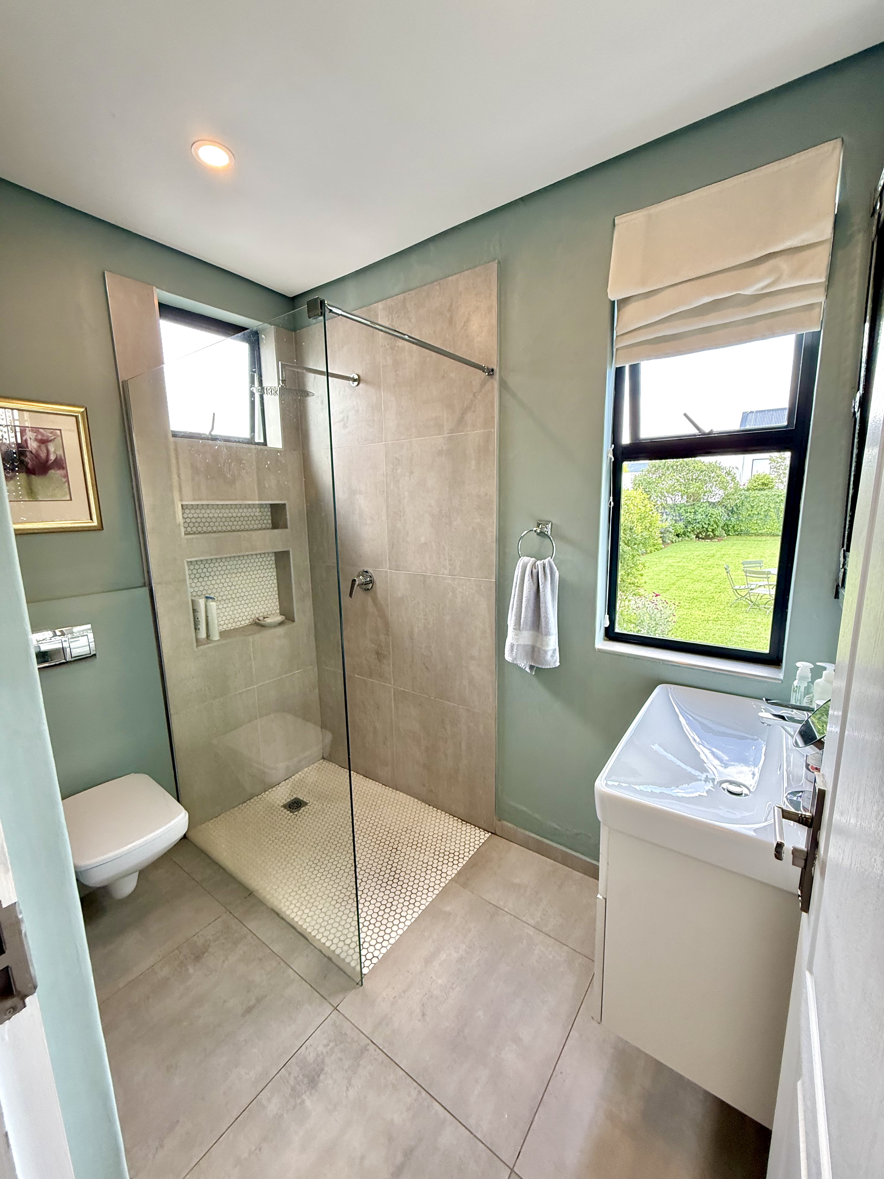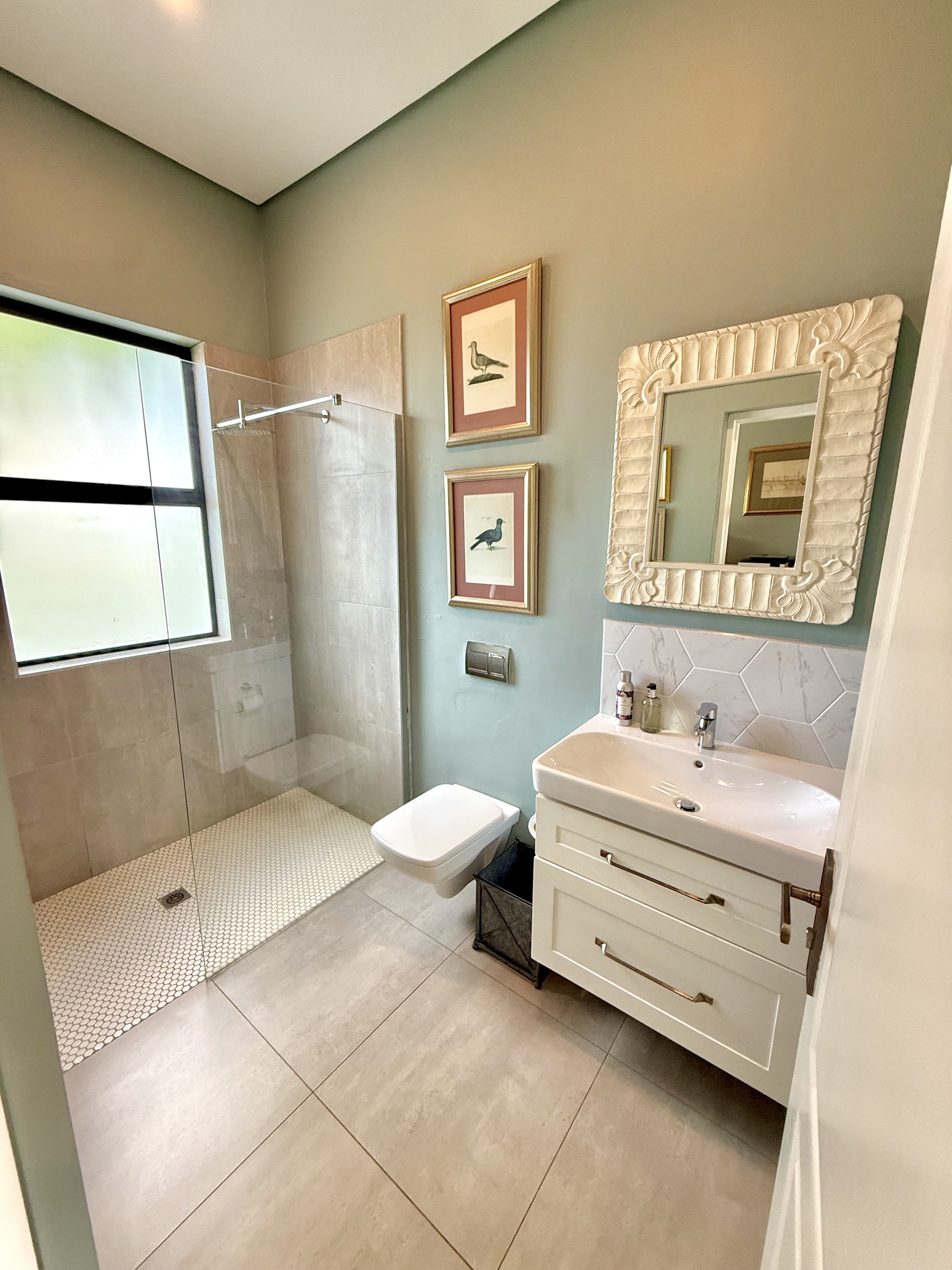 The home features three spacious, modern bedrooms, all en-suite with built-in cupboards, ensuring comfort and privacy for the entire family. An enclosed veranda flows seamlessly onto the garden, the perfect space to relax, unwind, or host guests.