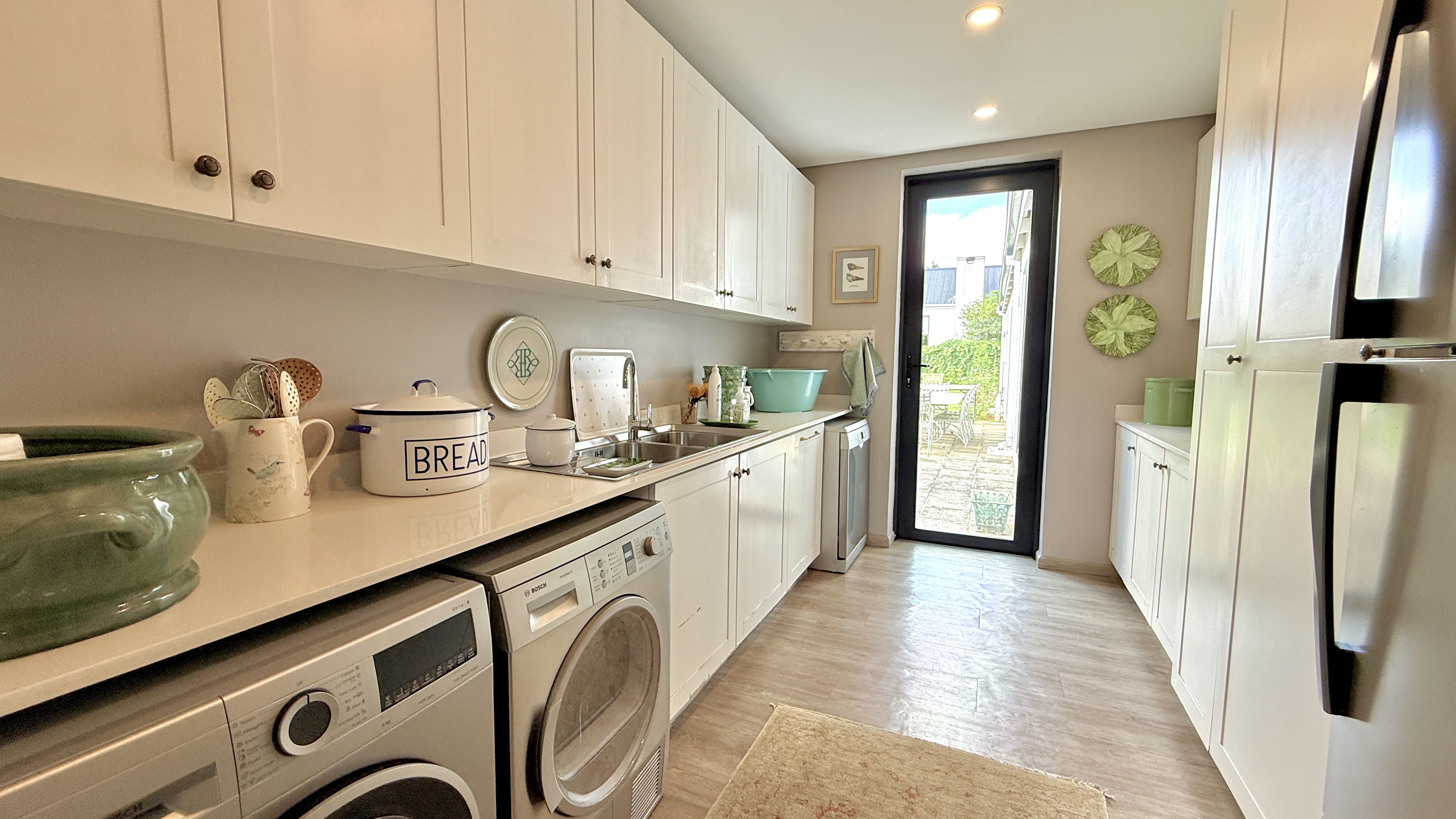 The sleek kitchen, complete with a separate scullery, is ideal for both family living and effortless entertaining.