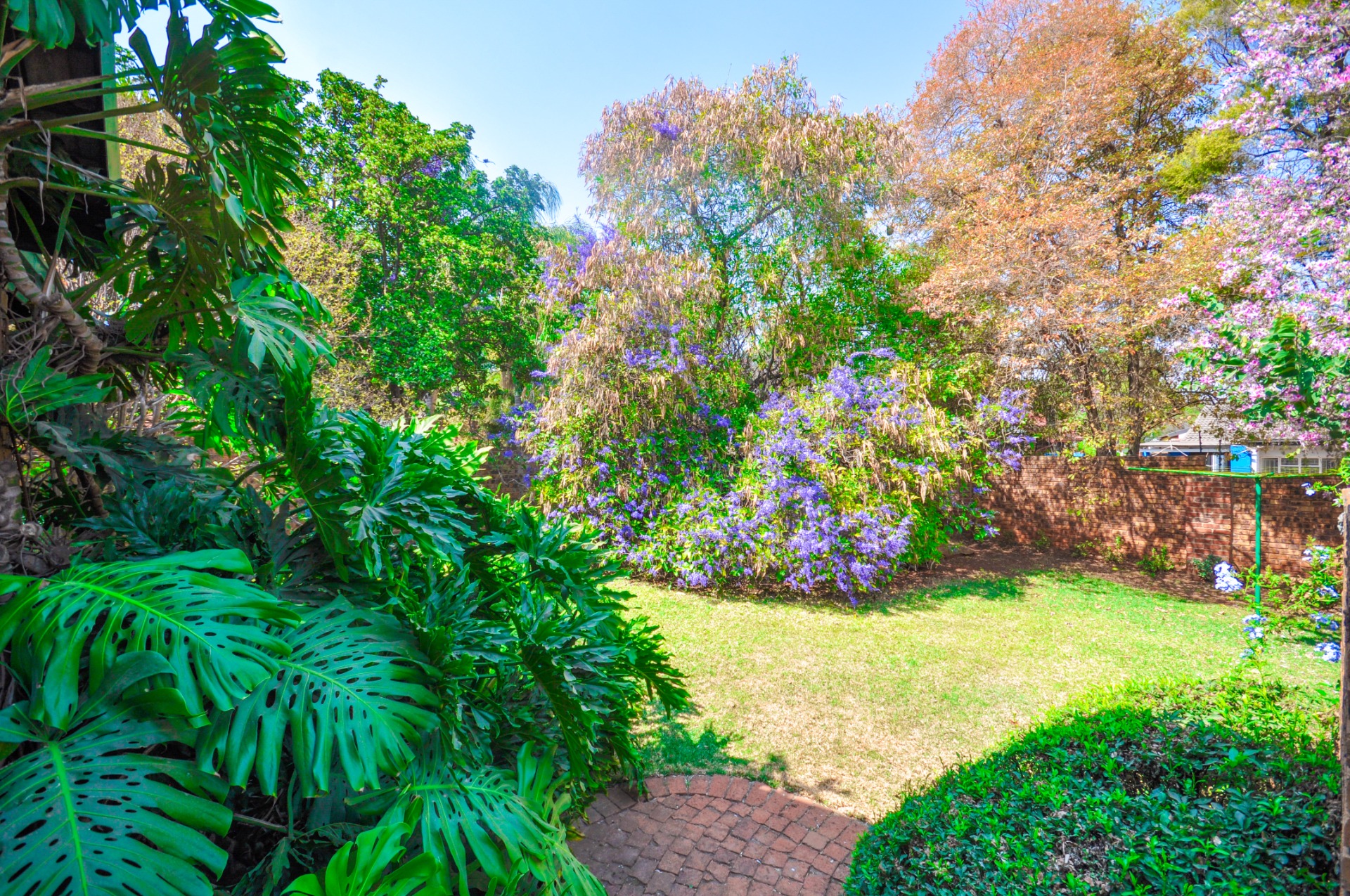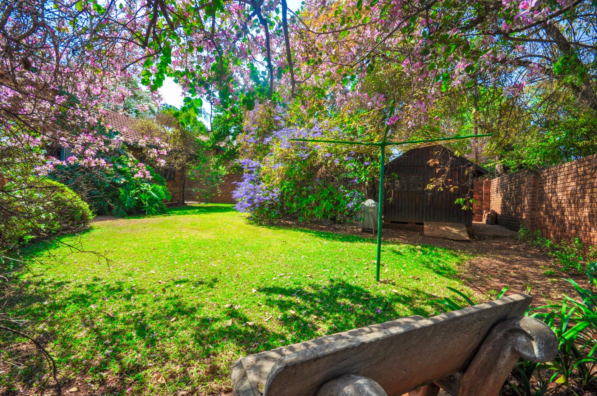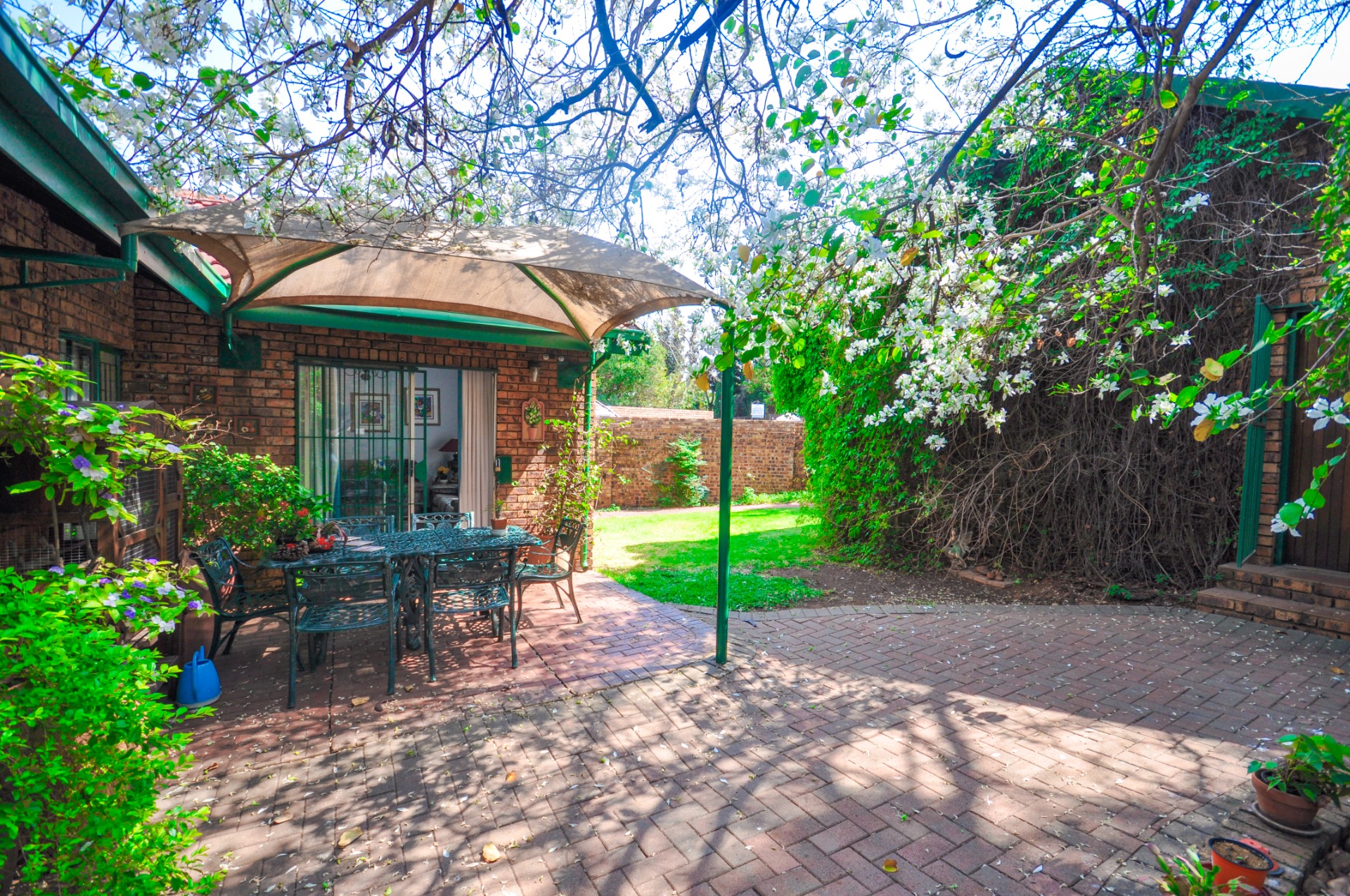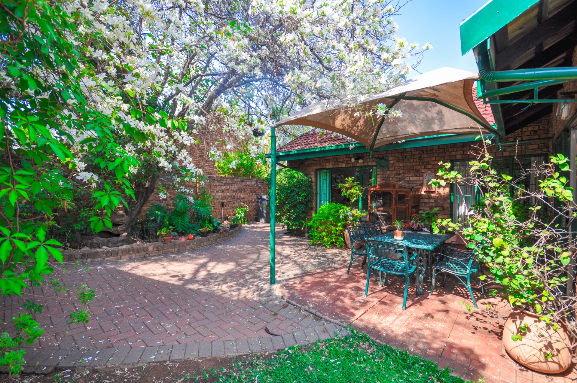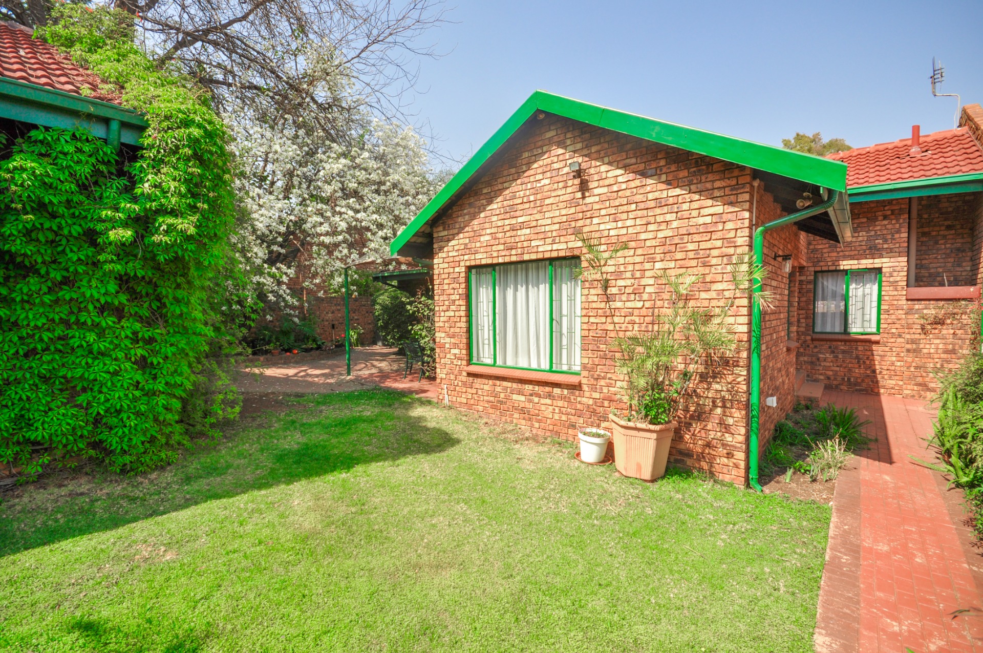 Step outside and discover a lovely leafy garden, providing a peaceful outdoor haven ideal for
