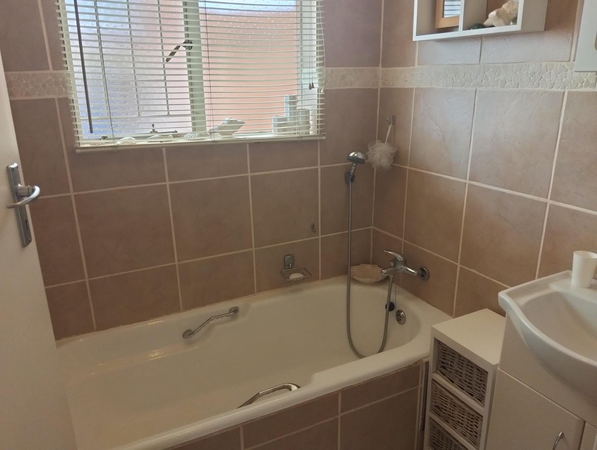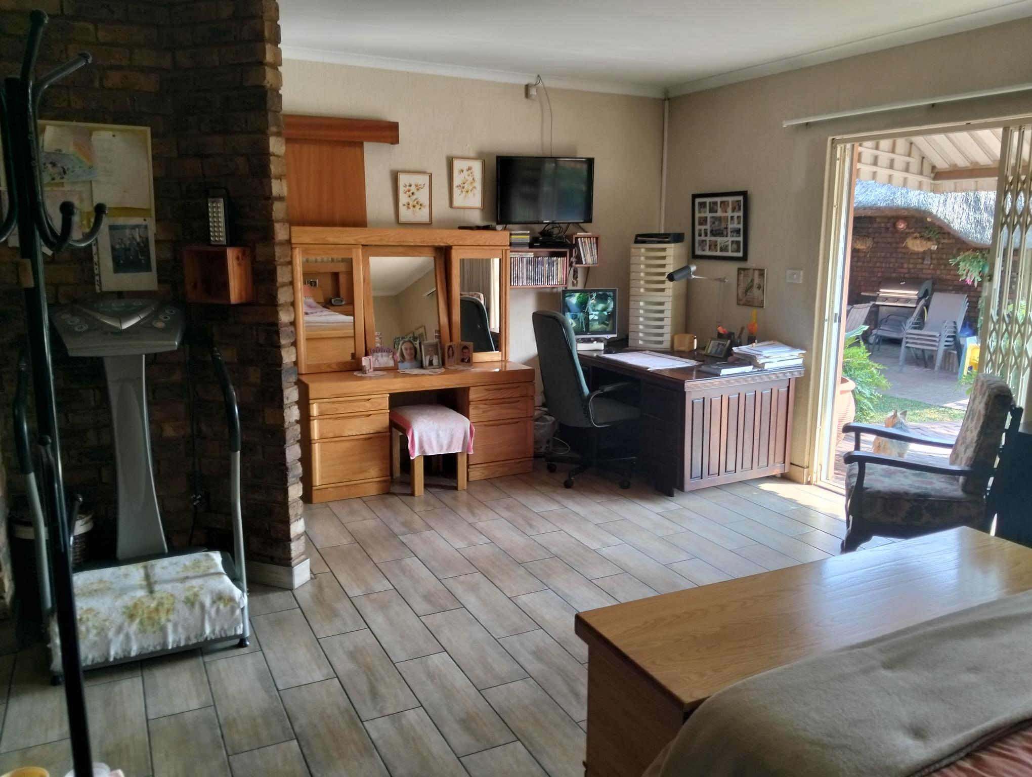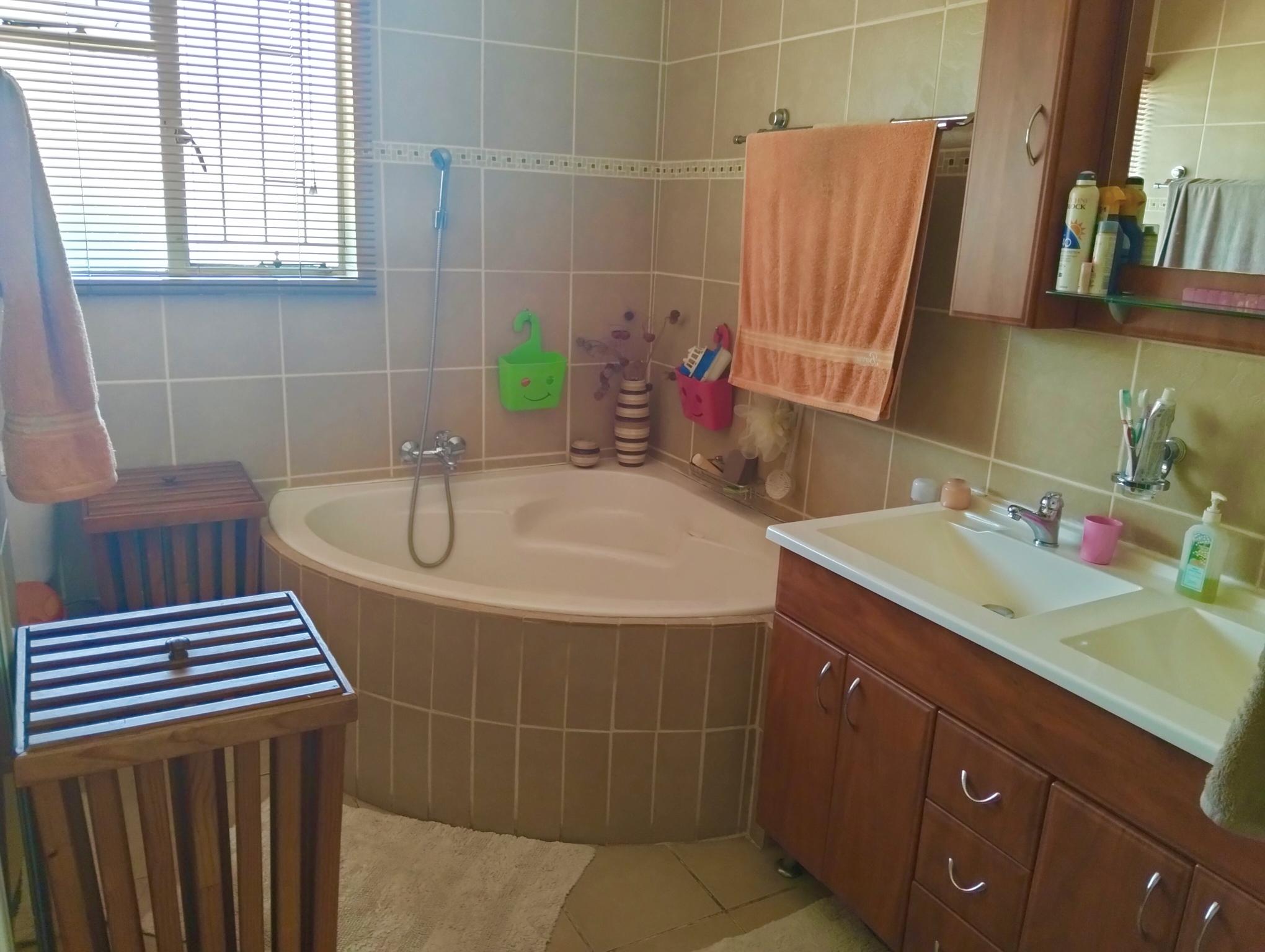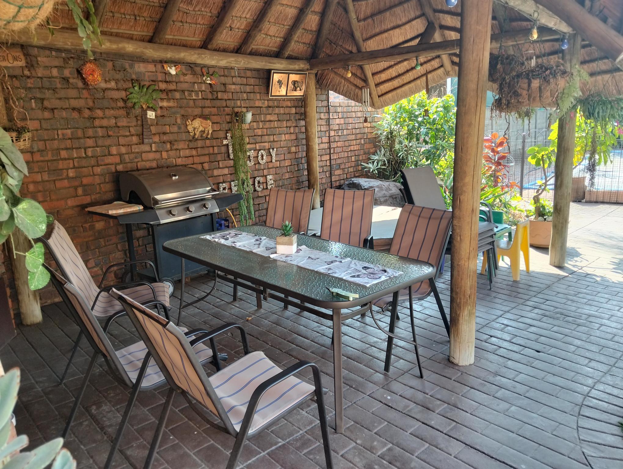 Perfect for entertaining with the spacious lapa that has a built in braai and jacuzzi, overlooking the sunny chlorinated swimming pool and spacious grass area, perfect for kids playing.