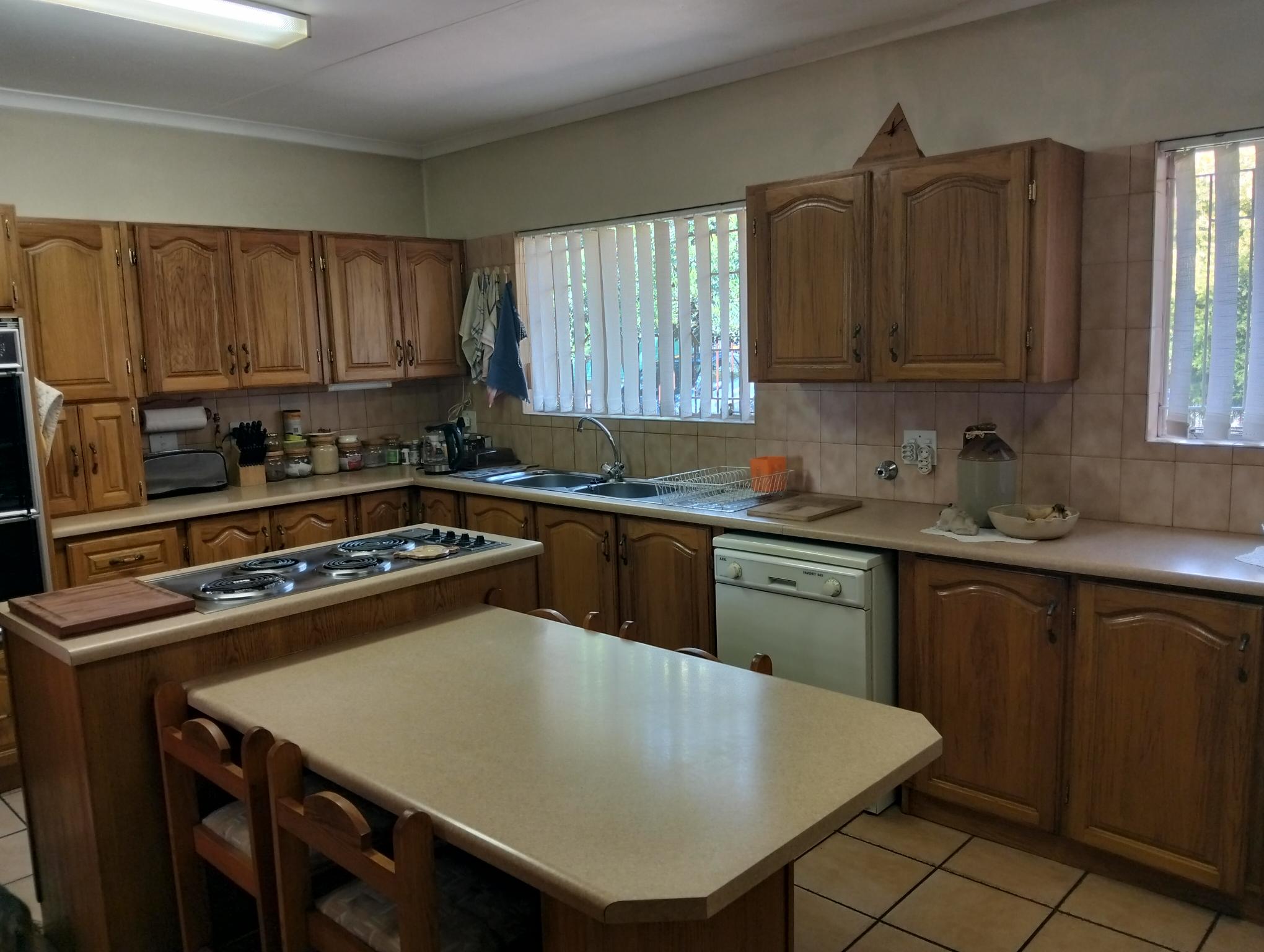 Lovely large kitchen with ample cupboard space, leading out to spacious covered courtyard and laundry room.