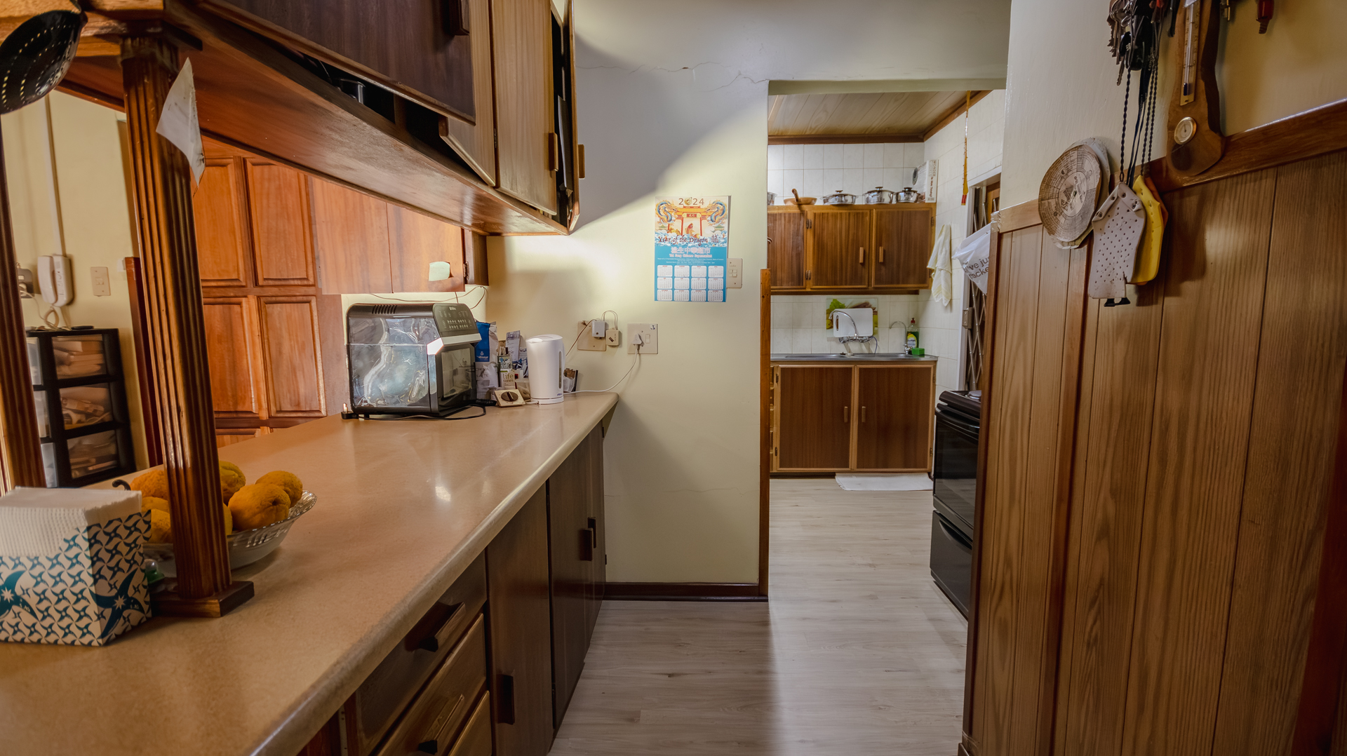 The main home features four bedrooms and two bathrooms, with generous living areas flowing in a semi-open-plan layout into a practical kitchen with a separate scullery.
