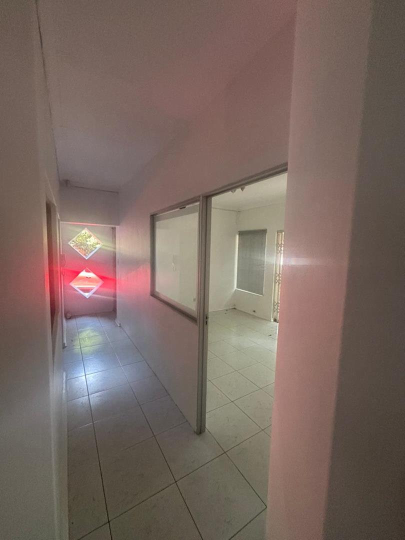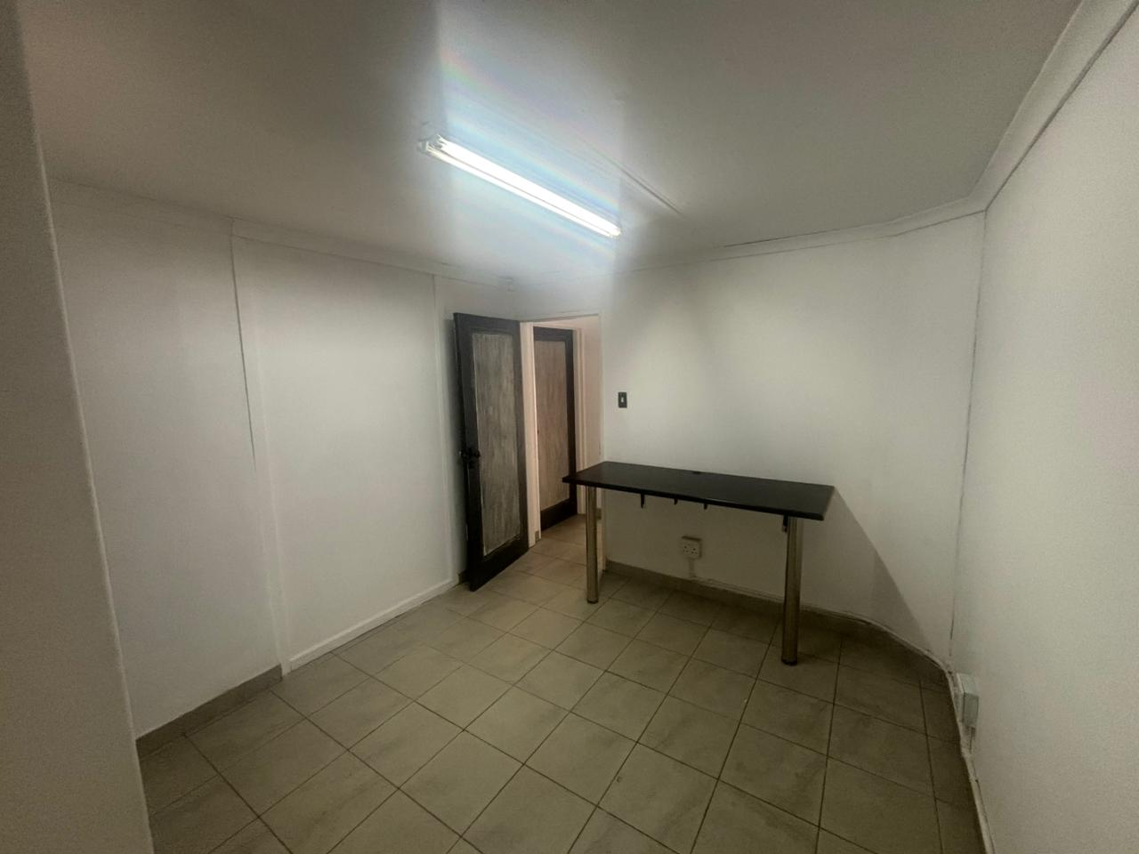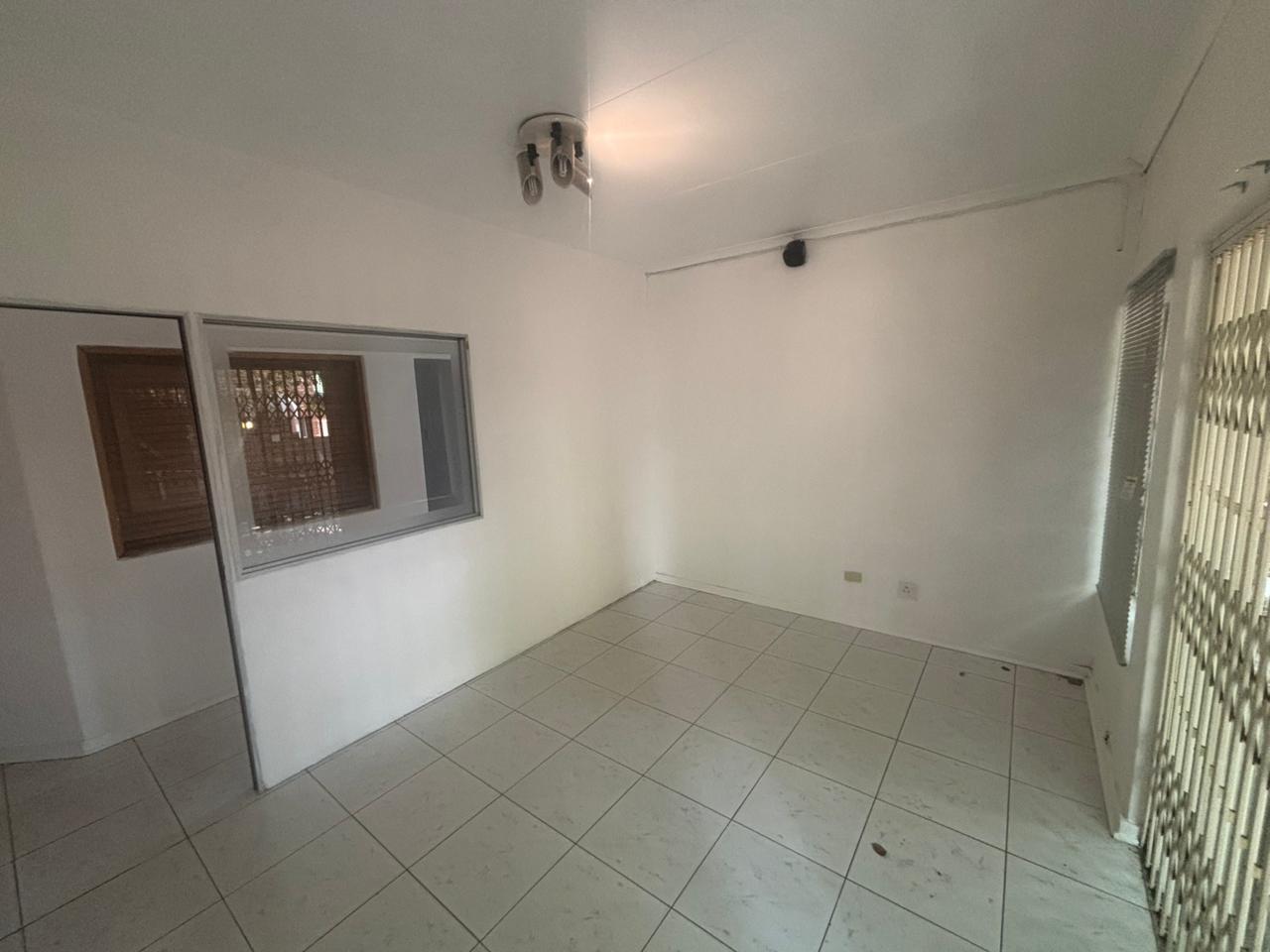 Four to five private offices, reception area, bathroom, kitchen area.