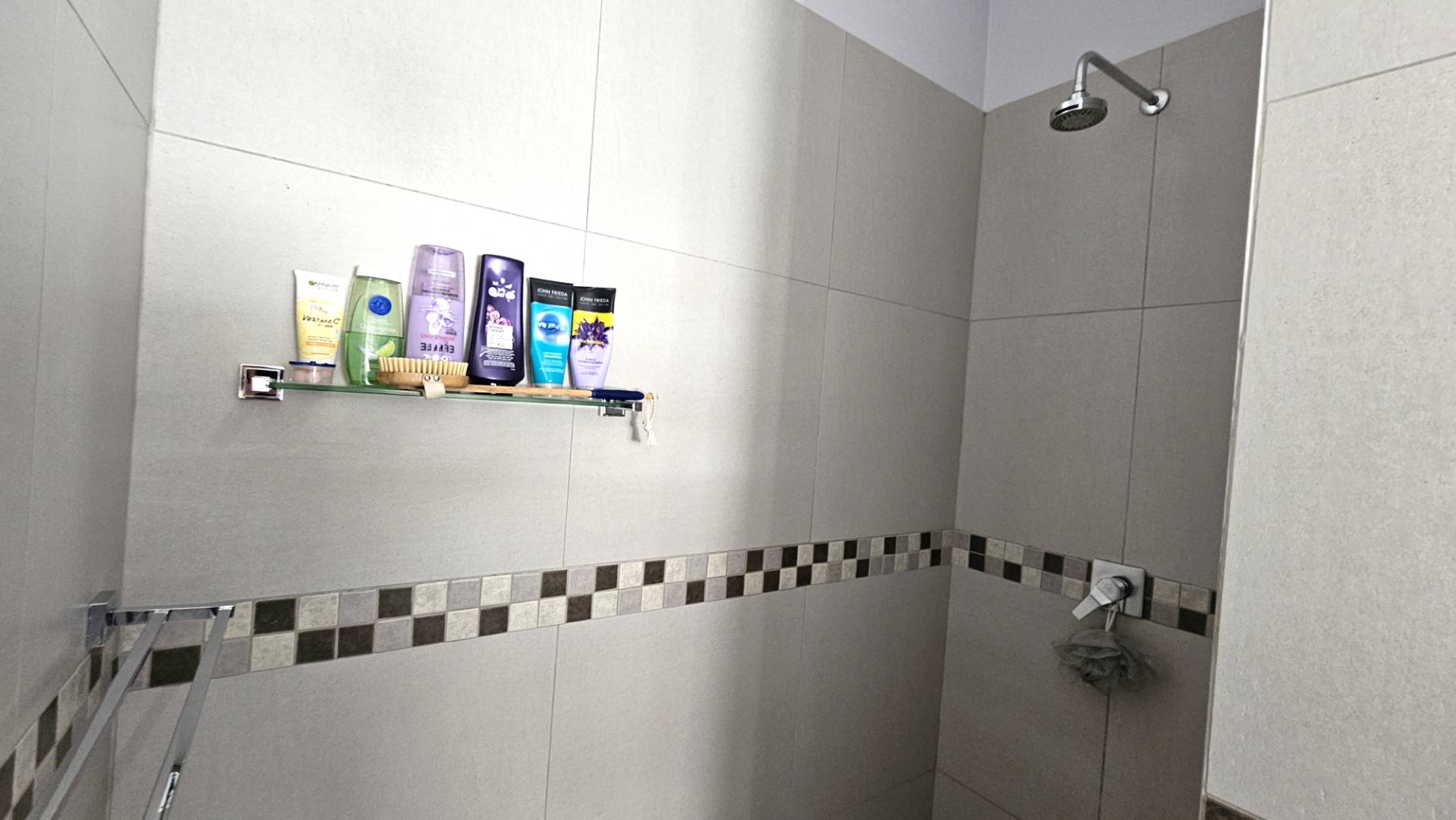 Down stairs another 2 well sized bedrooms en suite of which 1 with bath, basin and toilet and the other 1 with shower, basin and toilet. Both of these bedrooms have sliding doors fitted with security doors, leading to the small easy maintainable garden. There is enough space to have a coffee station for your convenience.
