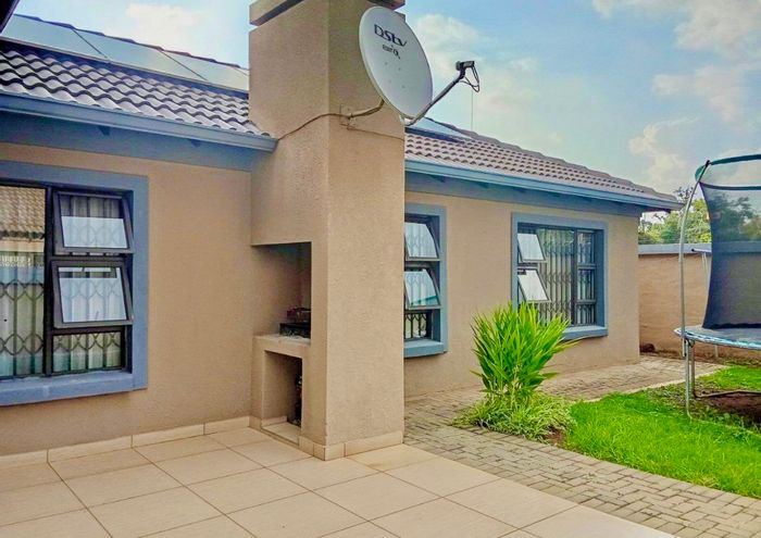Peaceful family living steps from schools and malls in Eldorette, Akasia, Gauteng, with a private Zen garden, three bedrooms, 2.5 baths and double garage.