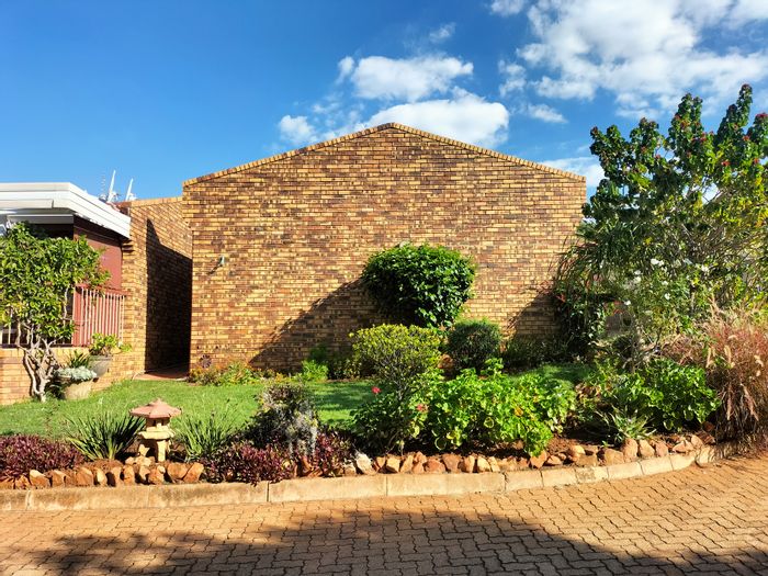 Peaceful retirement living in sought-after Amandasig Aftree Oord, minutes from shops and on-site café; corner unit with sunny louvre-awning patio, wheelchair-friendly, two beds, two baths, single garage.