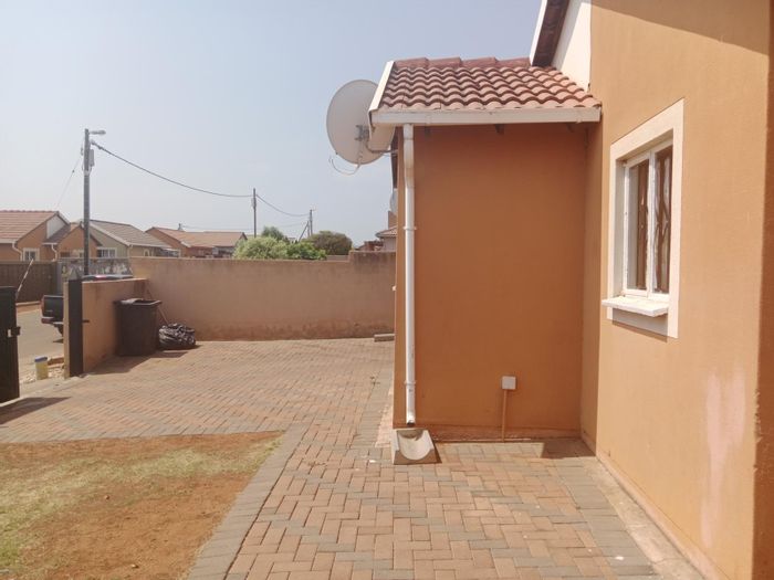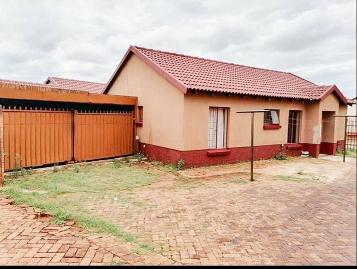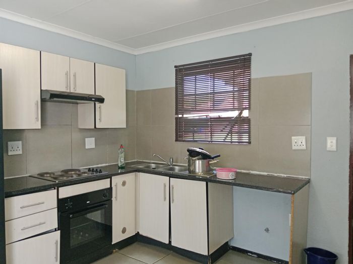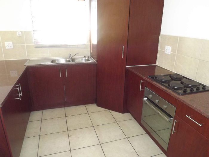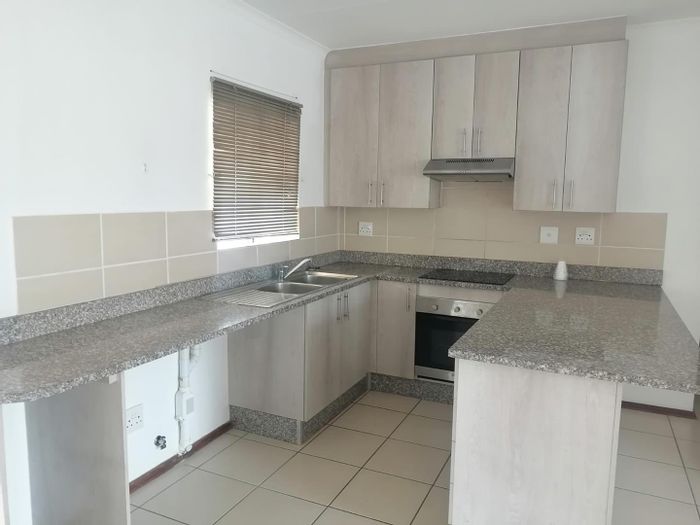 2-bedroom townhouse in Bella Rosa Security Estate, Akasia. Features 1 bathroom, open-plan lounge & kitchen, private garden, and covered parking.