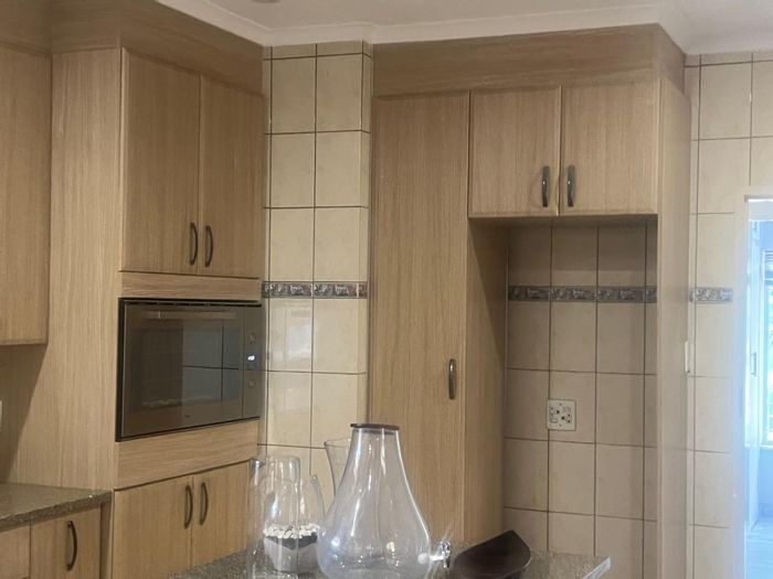 Poolside family living in a peaceful suburban setting, with a large garden and lapa with built-in braai — three bedrooms, two bathrooms and a double garage.