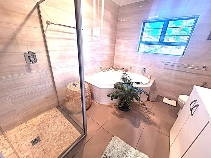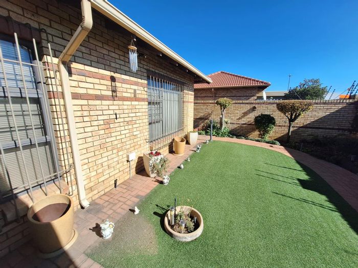 Secure face-brick simplex in sought-after New Market Park, offering open-plan kitchen to lounge/dining, enclosed patio overlooking private garden — three bedrooms, one bath and double garage.