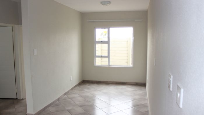 Relaxed ground-floor living in Greenwood Gardens, Alliance Benoni — secure complex with easy N12 access, open-plan lounge/kitchen, solar geyser and backup tank; two bedrooms, one bath, two covered bays.