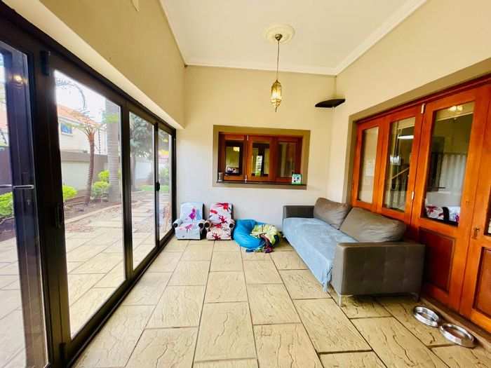 Family-focused living in prime Rynfield, minutes from malls, schools and Netcare Linmed Hospital. Landscaped palm garden and covered braai, plus flatlet and bachelor unit for income.