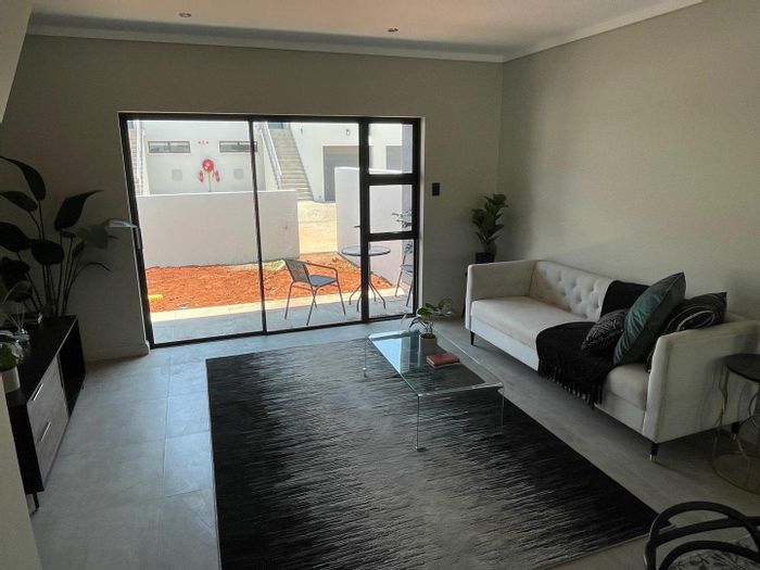 Modern, spacious townhouse with 2 bedrooms, 2 bathrooms, open plan living, built-in braai, inverter, solar geyser, smart switches, and more.