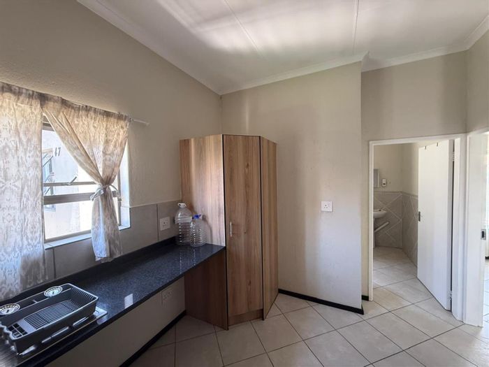 Relax in ground-floor convenience in popular Goedeburg, Benoni—light open-plan living flowing to a private enclosed garden, pet-friendly for one small dog. Two bedrooms, one bathroom, covered parking.