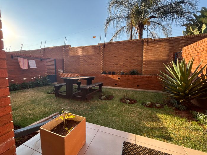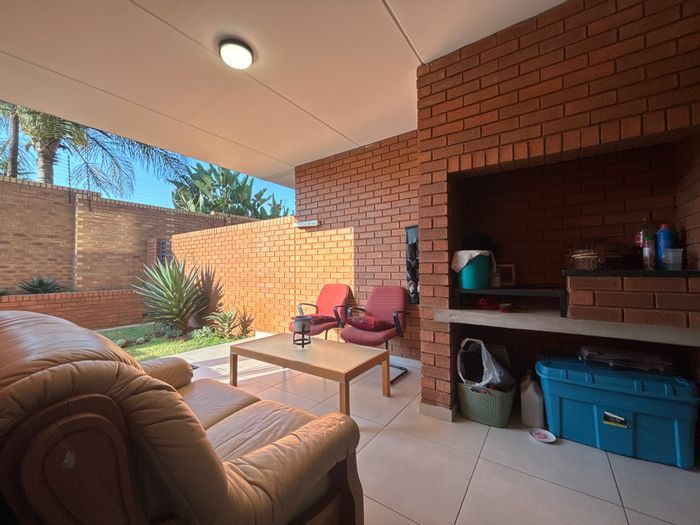 Entertainer's renovated townhouse in sought-after Bartlett, featuring a covered patio with built-in braai and manicured private garden, granite SMEG kitchen, solar power, double automated garage, and communal pool.