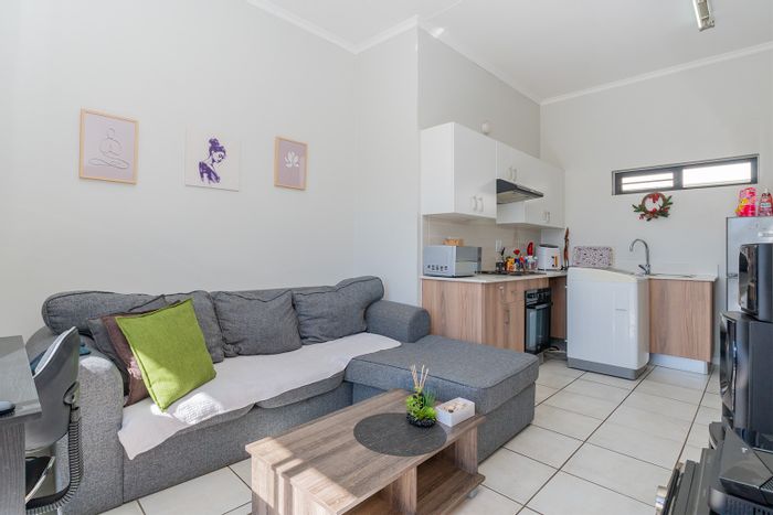 Enjoy secure estate living with serene gardens and communal pool; private balcony with elevated views, open-plan lounge and modern kitchen. One bedroom, one bathroom, and single covered carport.