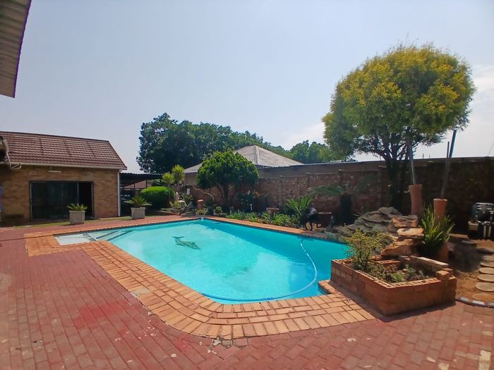 Relaxed family living in the heart of Brakpan Central, set on a large garden with a pond and blue bridge — three bedrooms, two bathrooms and a double carport.