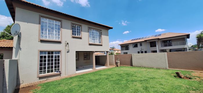 Relaxed, secure living in a 24/7 guarded complex with a private garden and upstairs patio, plus an 8 kW solar system; three bedrooms, 2½ bathrooms and shade-net parking for two.