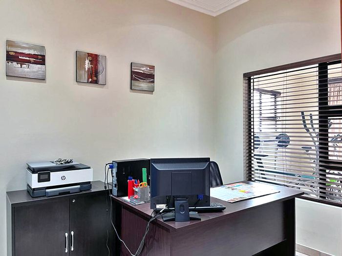 Entertainer's paradise in central Geluksdal, moments from the hospital, schools and Carival Mall — features a gourmet kitchen, boma with built in braai and double garage, four bedrooms, three baths.