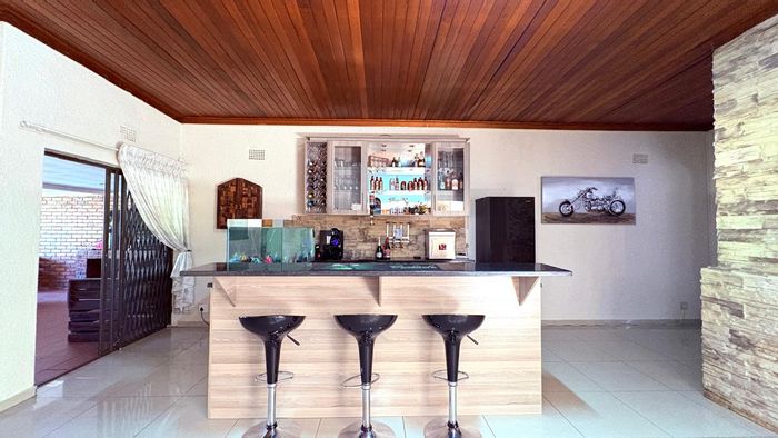 Entertainer's family retreat in secure Brakpan neighbourhood, close to schools and shops, featuring a sparkling pool and thatched lapa with built-in braai. Four bedrooms, three bathrooms.