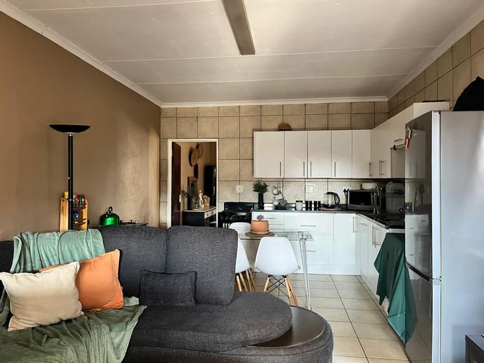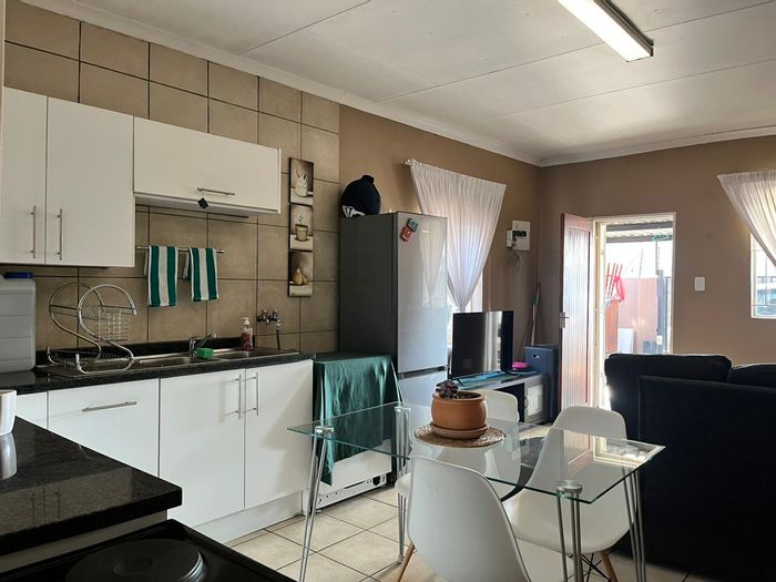 Secure, pet-friendly home near Laerskool Brakpan-Oos with an open-plan lounge, small back garden for pets, modern kitchen, automated gate and double carport — two bedrooms, one bathroom.