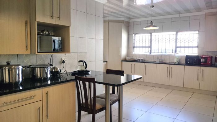 Effortless family entertaining in Carletonville Ext 8, with a large enclosed entertainment area featuring built-in bar and braai, plus a one-bedroom flatlet; three bedrooms, two bathrooms and double garage.
