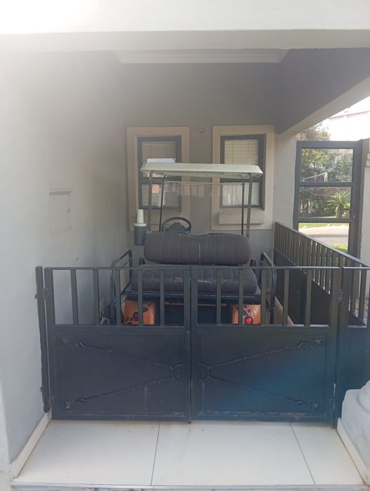 Family-focused golf estate living in Blue Valley Golf Estate, with covered patio and built-in braai overlooking a manicured garden; four bedrooms, three bathrooms and ample covered parking.