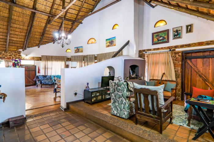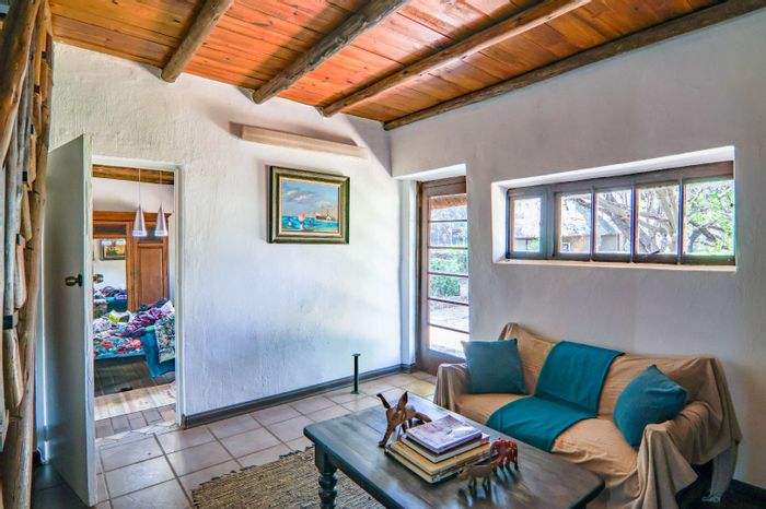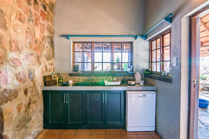 Hilltop guesthouse eco-retreat in Crocodile River Reserve, 32ha straddling the Rhenosterspruit — off‑grid solar, pool, river walks and free‑roaming game, minutes from Maropeng.