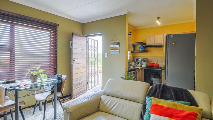 Embrace relaxed estate living between Centurion and Midrand with effortless freeway access; first-floor apartment overlooks landscaped park and offers an open-plan kitchen, 2 bedrooms, one bathroom, covered parking.